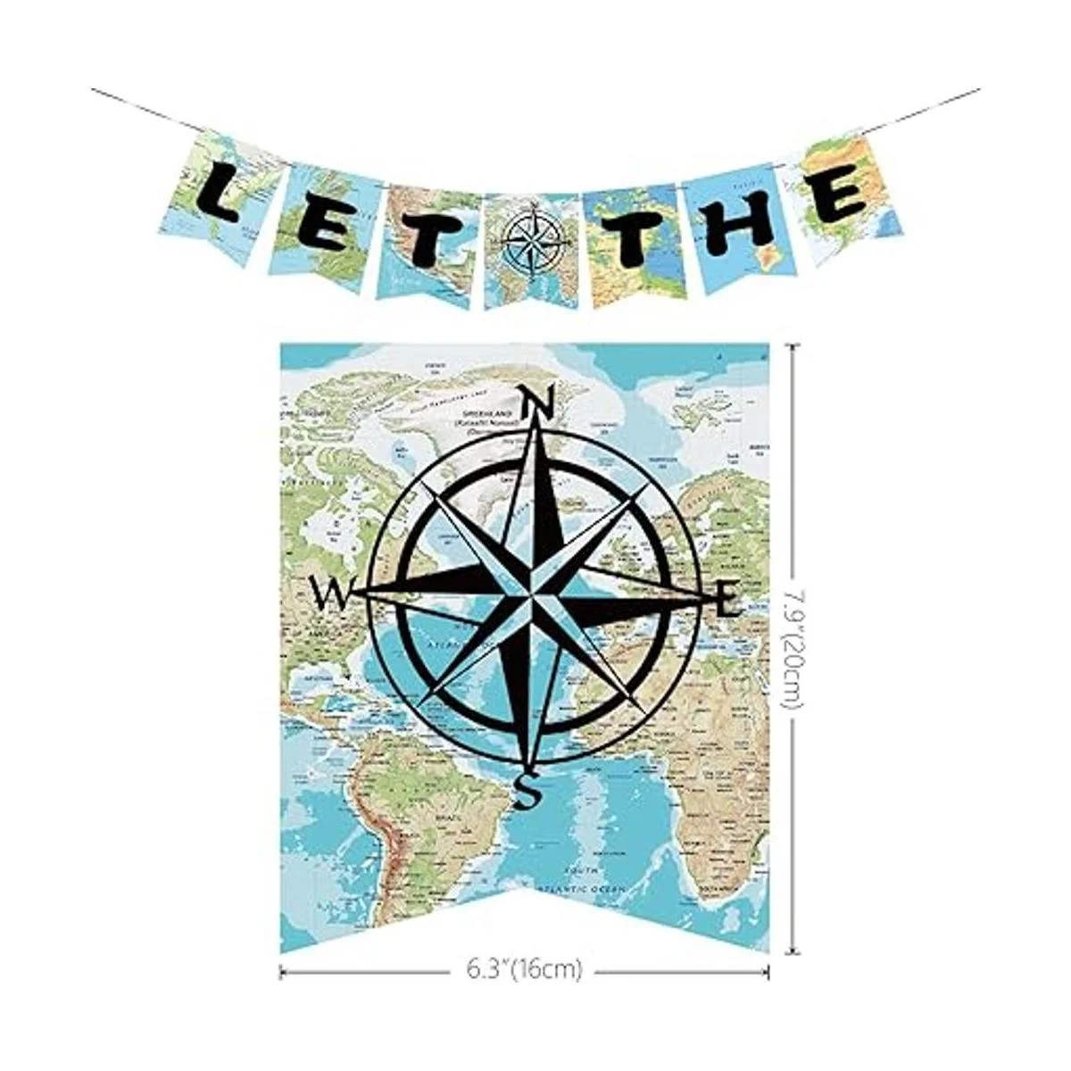 Comienza la aventura: toma una aventura fresca para la nueva vida. Estas banderas de aventura impresas con mapas del mundo son una gran opción para decorar para el cumpleaños, baby shower, graduación, jubilación y fiesta temática de viaje. Bon Voyage
