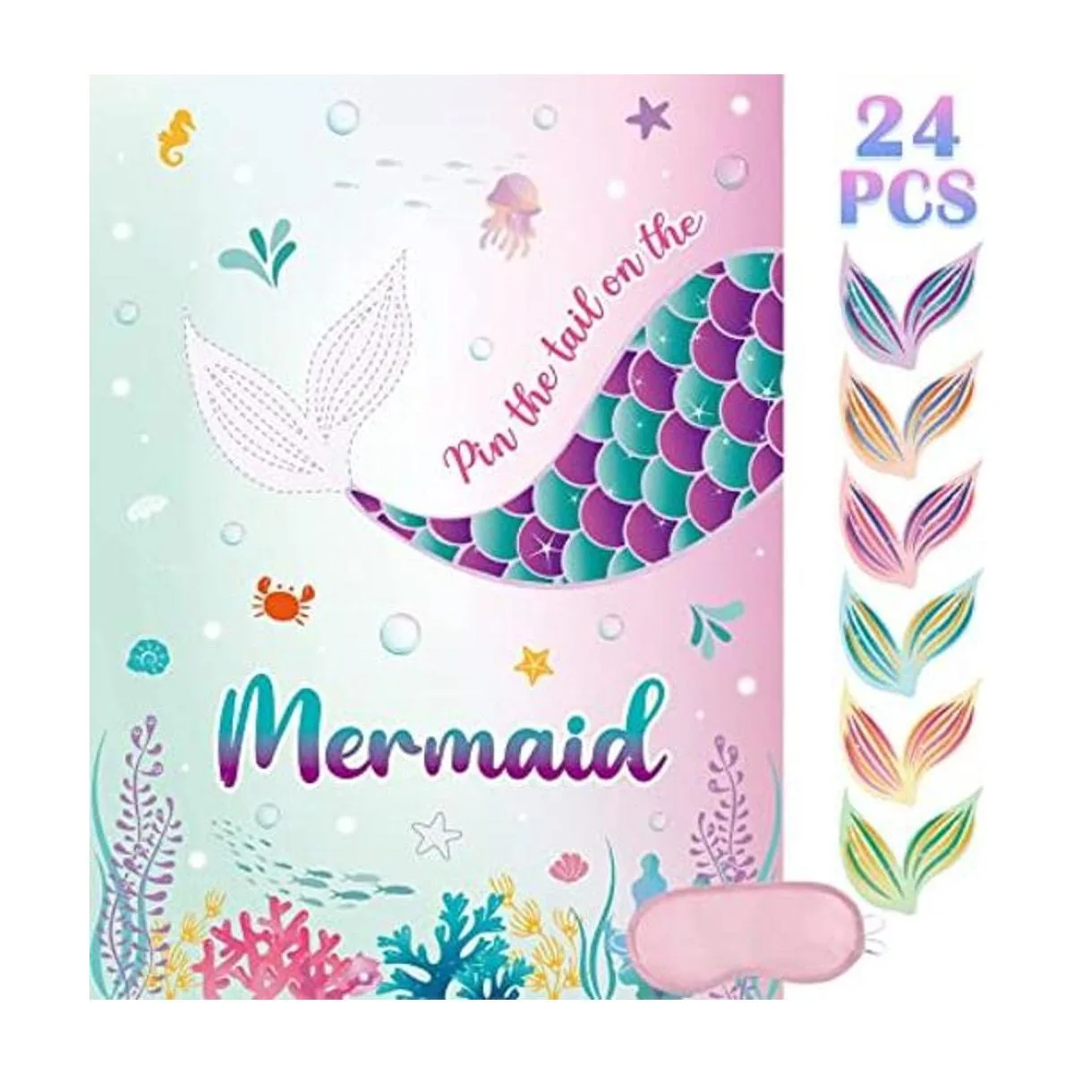 WERNNSAI Pin The Tail on The Mermaid Game Juego de 21 x 28 pulgadas, juego de fiesta de sirena, 24 unidades, calcomanías reutilizables para colas, suministros de fiesta para niños y niñas, juegos de recuerdos de fiesta de cumpleaños