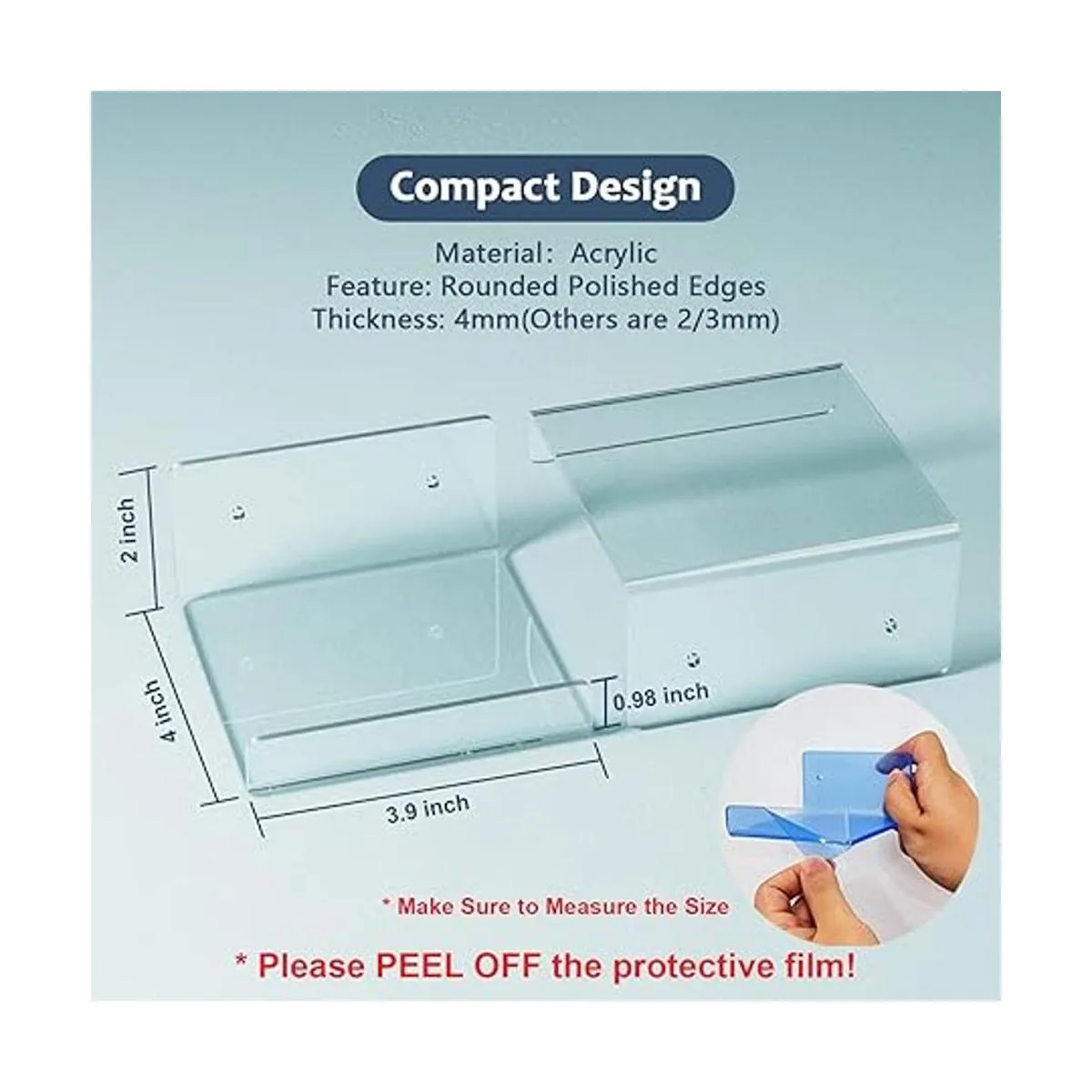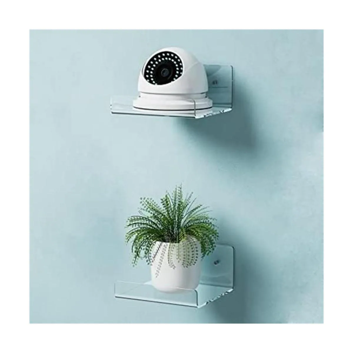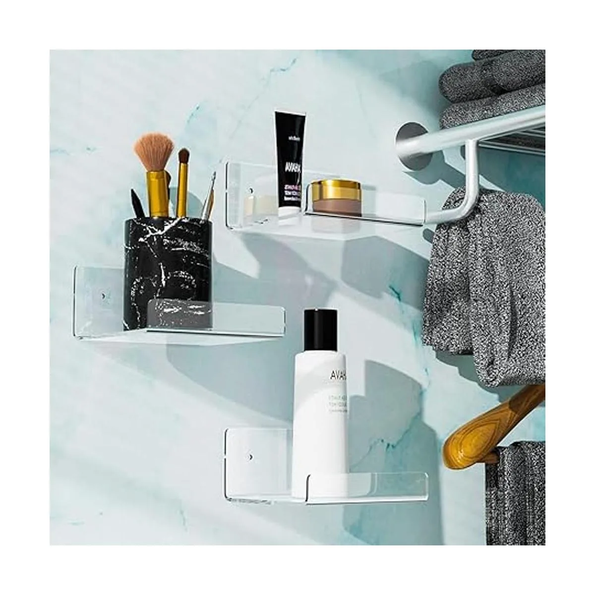 Weronique Paquete de 2 estantes de pared pequeños adhesivos flotantes acrílicos, estantes colgantes con 2 tipos de instalación, transparente