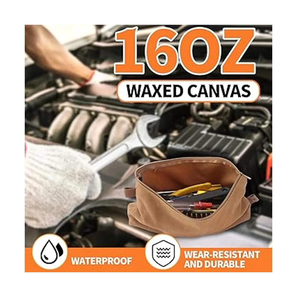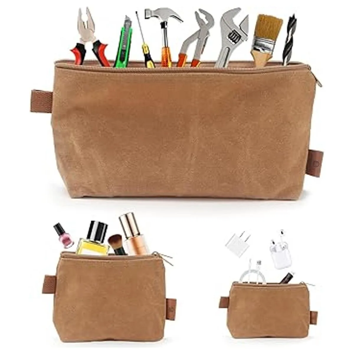 Wessleco 3 bolsas pequeñas para herramientas, bolsa de lona encerada de 16 onzas con cremallera, bolsa de herramientas resistente, bolsa de lona resistente al agua, bolsa organizadora de herramientas caqui