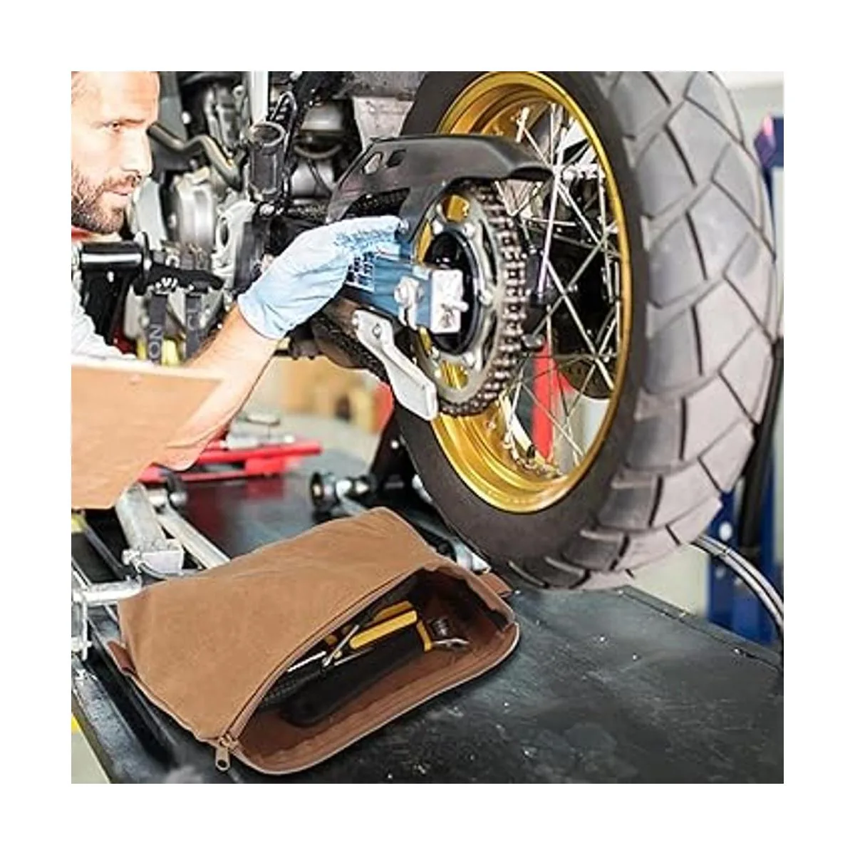 Bien hecha La bolsa con cremallera para herramientas está hecha de lona encerada de 16 onzas, impermeable, duradera, ligera, con cremallera de nailon que funciona suavemente y no se atasca.