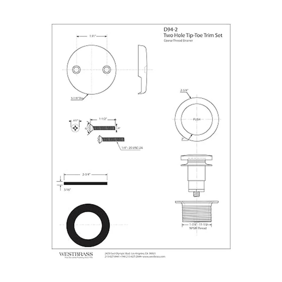 Dos 2 1/4 pulgadas 20 x 11/2 pulgadas. Tornillos de latón chapados incluidos
