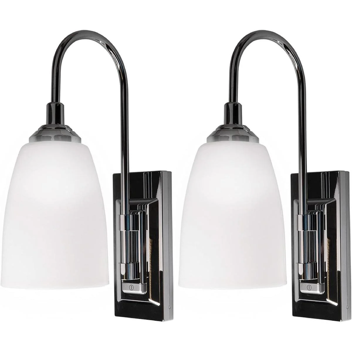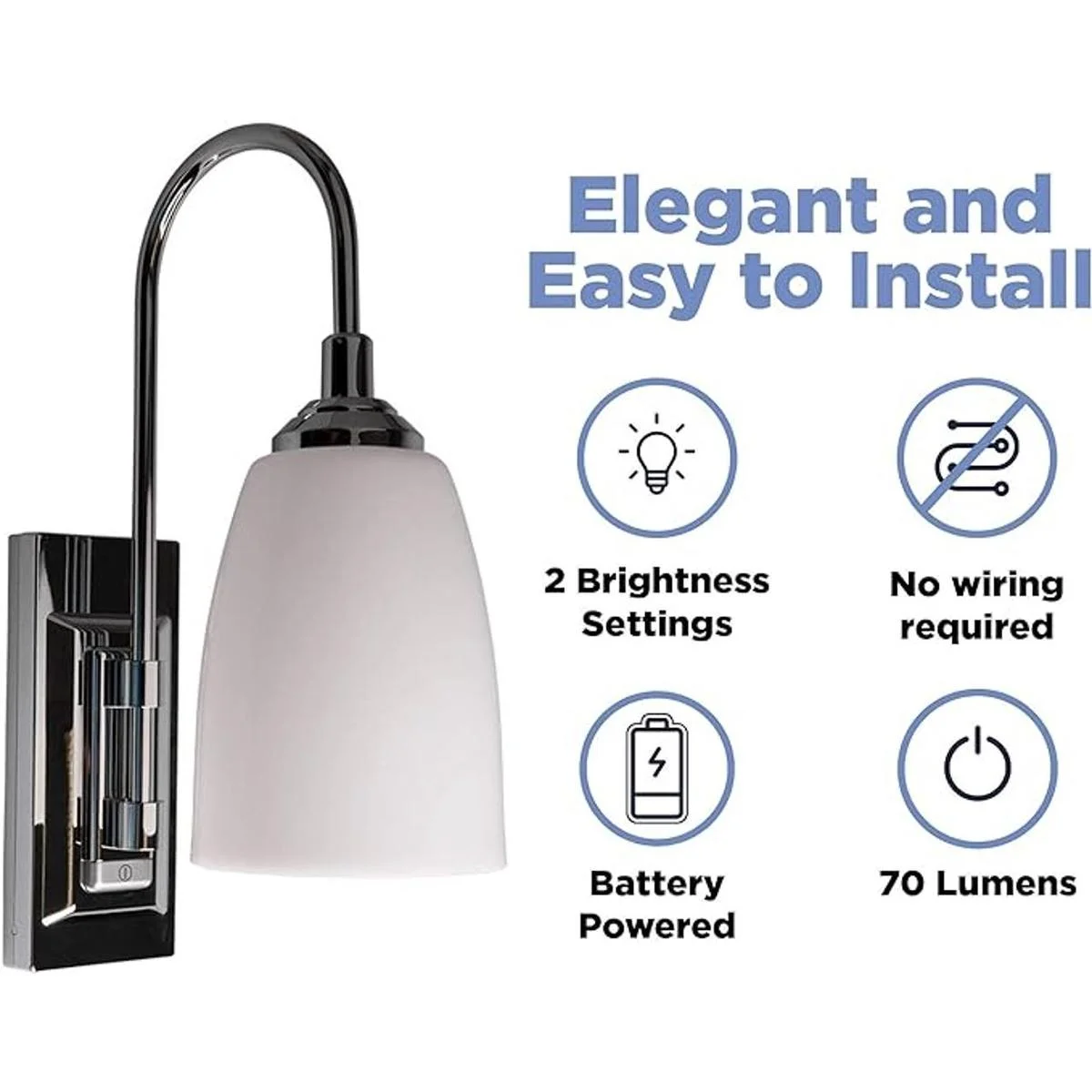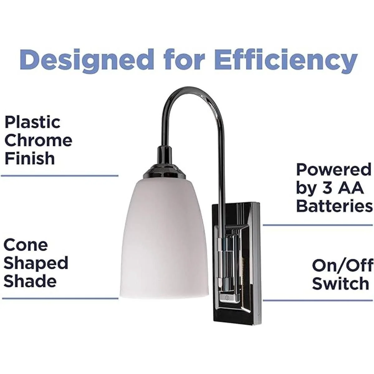 Westek Aplique de pared a pilas, paquete de 2 70 lúmenes, plástico con acabado cromado Aplique de pared de batería fácil instalación inalámbrica, 2 ajustes, completo o tenue LPL780C