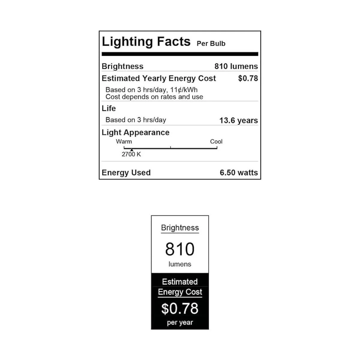 La bombilla LED proporciona un brillo de 810 lúmenes y una apariencia de luz blanca suave 2700 K