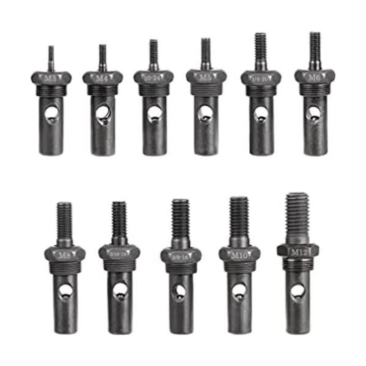 Contenido del paquete: estas piezas de herramientas de tuerca de remache WETOLS incluyen 11 mandriles. Tamaño: 3 / 816 1 pieza, 5 / 1618 1 pieza, 1 / 420 1 pieza, 10 / 241.06 1 pieza, M3 1 pieza, M4 1 pieza, M5 1 pieza, M6 1 pieza, M8 1 pieza, PC,M1 0 x 1 pieza, M12 x 1 unidad.