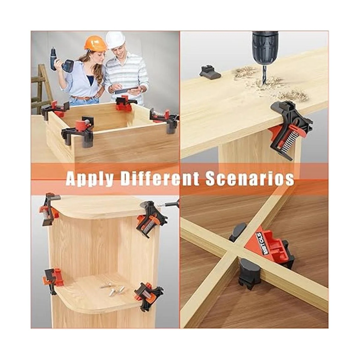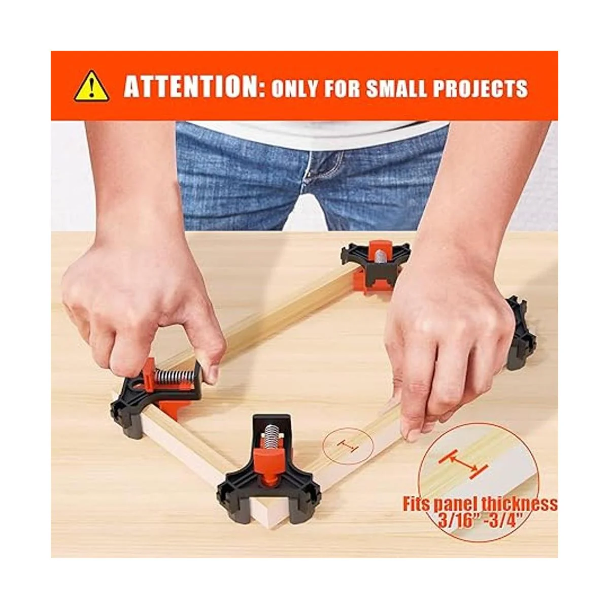 Ajustable y preciso: tablas y marcos de madera de fijación rápida en un ángulo de 90 grados. Se adapta a tablas con un grosor de 3/16 a 3/4 pulgadas para esquinas de 90 grados y juntas en T.