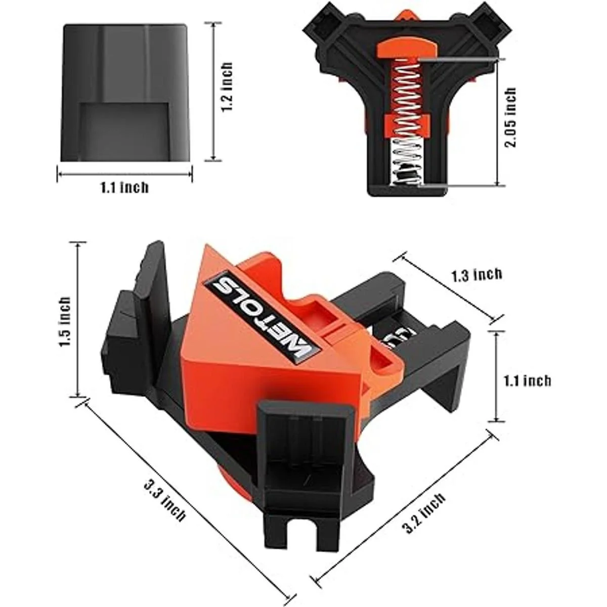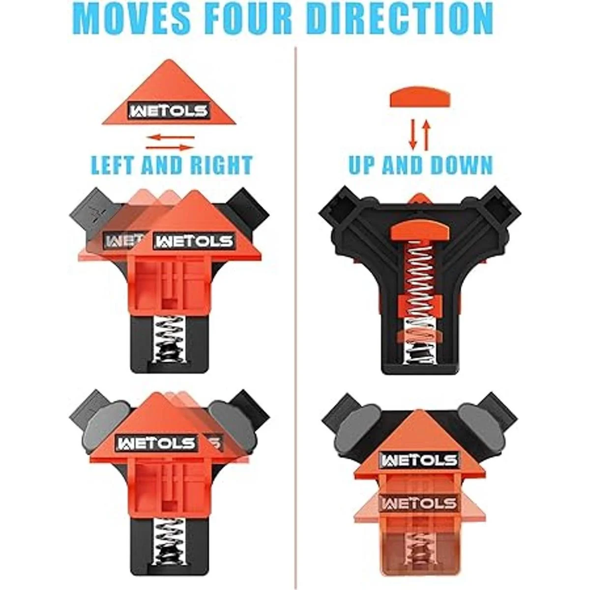 WETOLS Abrazaderas de esquina de 90 grados para carpintería, 4 abrazaderas de carpintería con resorte rápido, regalos del día del padre para papá, regalos de cumpleaños para hombres, carpinteros, gabinetes, marco de fotos