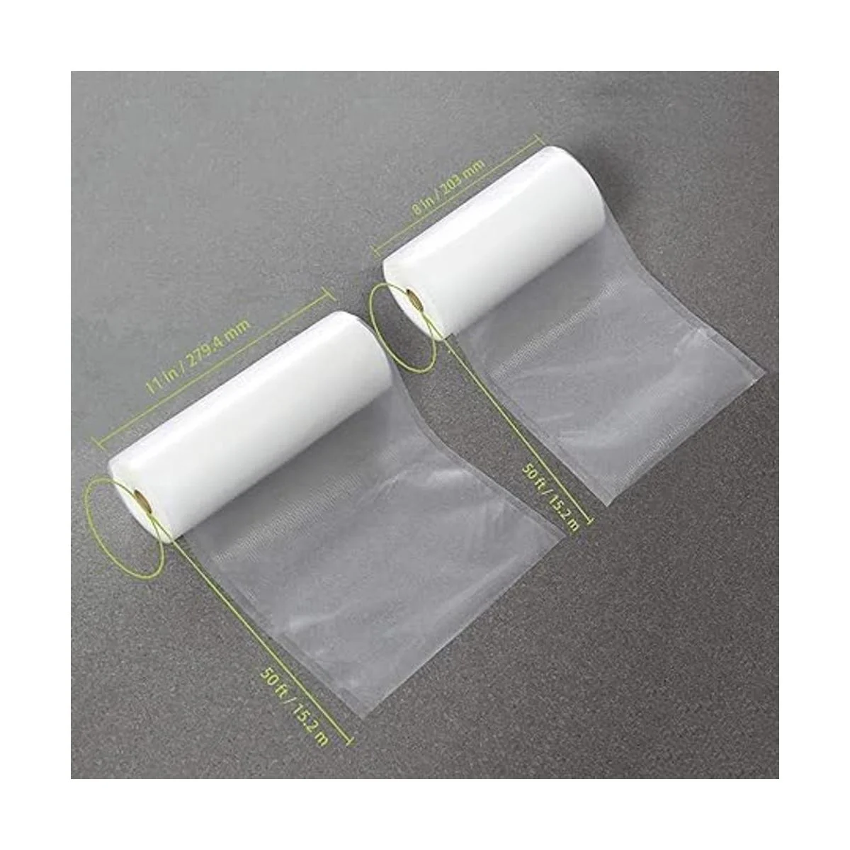 Resistencia y prevención de pinchazos: Rollos de 8.0 pulgadas u 11 pulgadas por 50 pies con canales en relieve para aumentar la succión, con protectores para huesos para evitar perforaciones, mantienen la frescura evitando las quemaduras por congelación o deshidratación.
