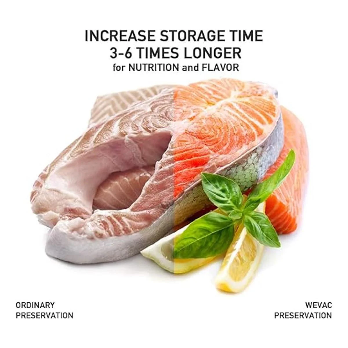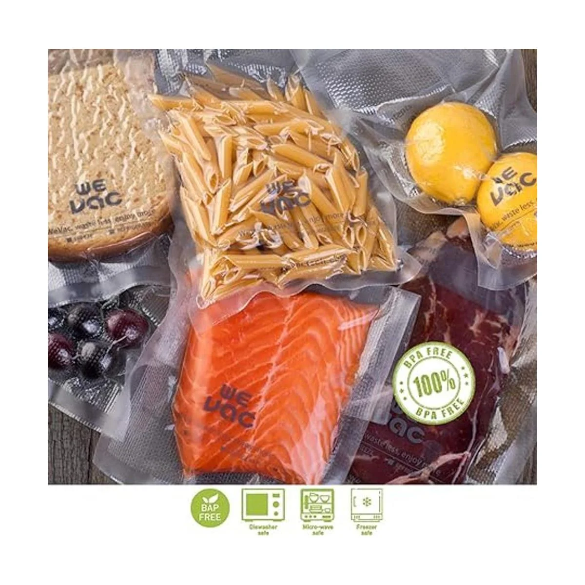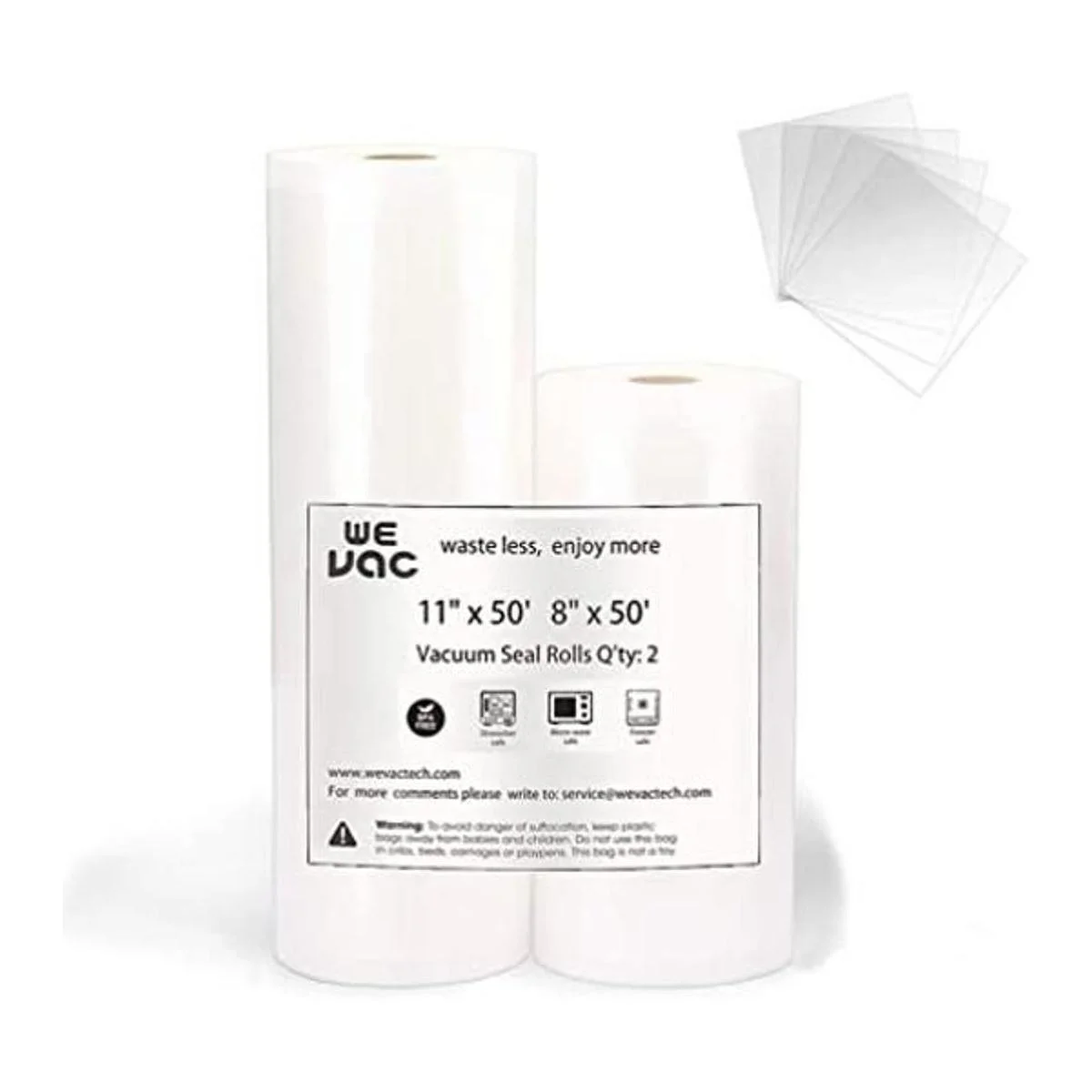 Wevac Bolsas sellables al vacío de 8 pulgadas x 50 pies, 11 pulgadas x 50 pies. Paquetes de 2 rollos para Food Saver, Seal a Meal, Weston. Tipo comercial, sin BPA, resistentes, ideales para almacenamiento al vacío, preparación de comidas o sous vide.