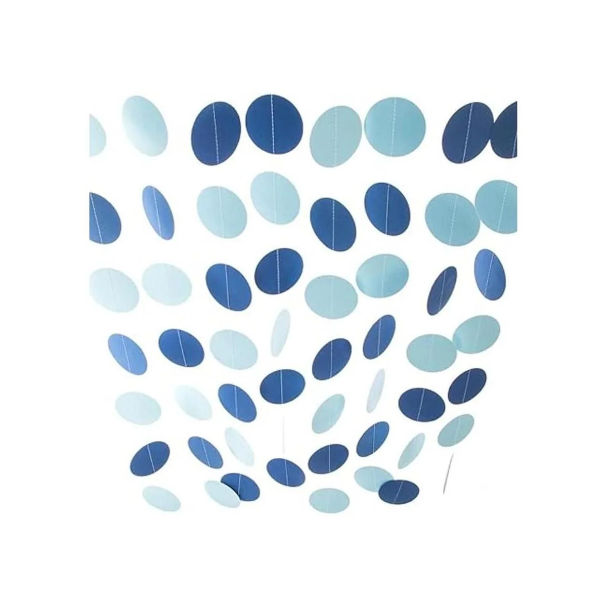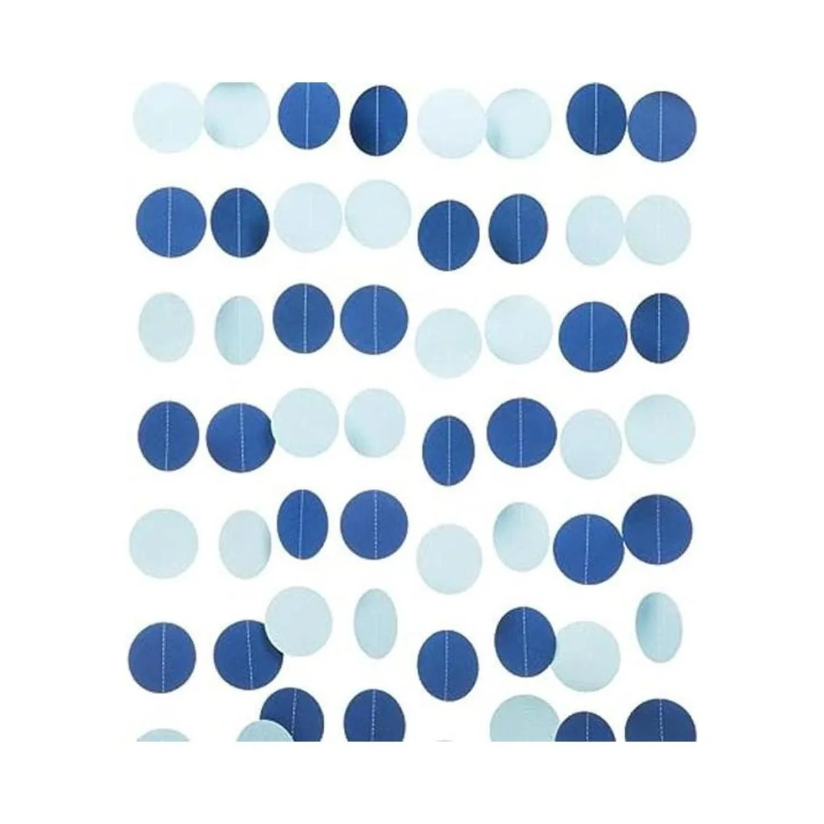 WEVEN Guirnalda de papel azul con puntos circulares para fiesta, decoración colgante, 2.5 pulgadas de diámetro, 20 pies en total