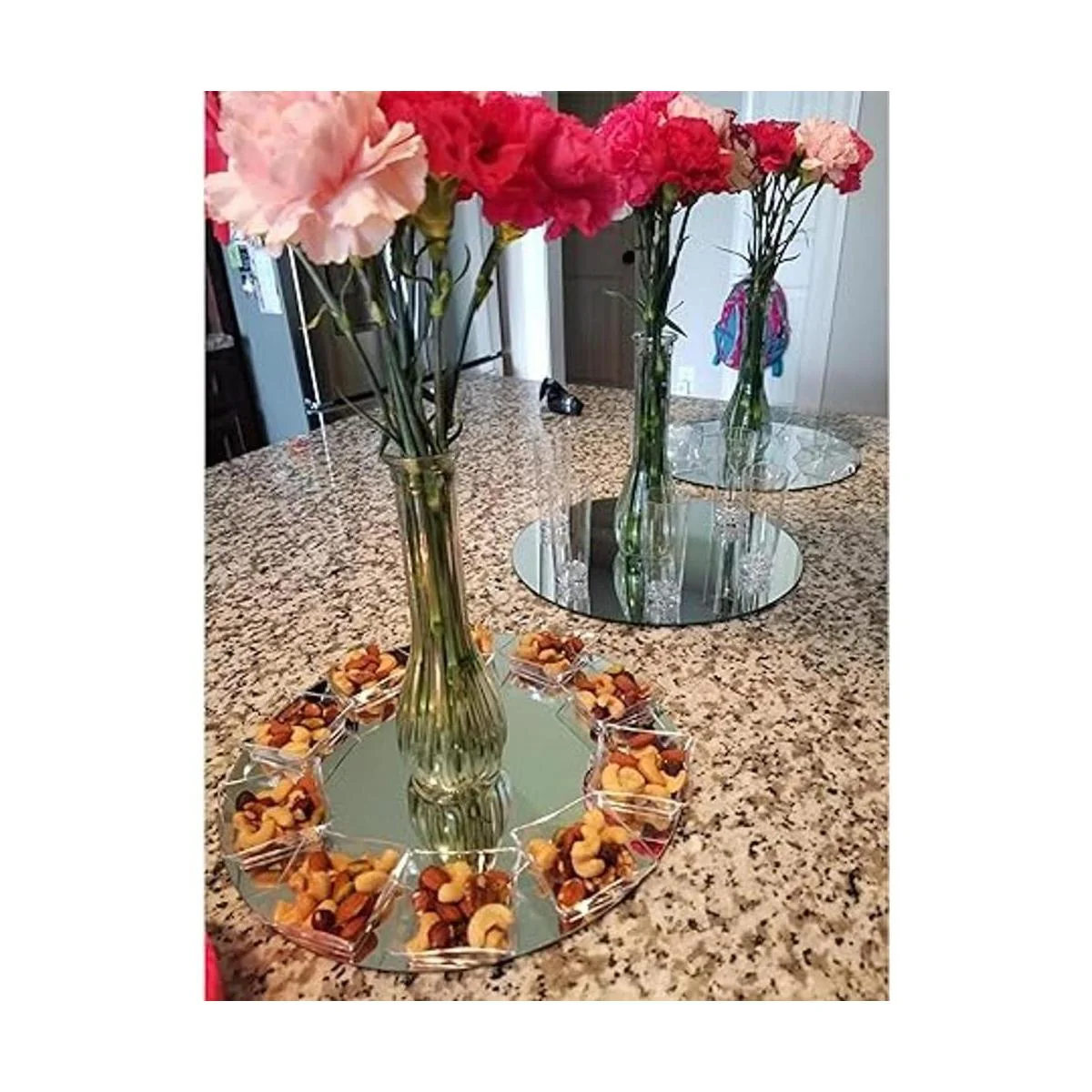 WGV Placa de espejo redonda grande de 8 pulgadas de diámetro, 0.177 in de grosor, bordes lijados sin marco, bandeja de vela gruesa de calidad, decoración de pared, centro de mesa de boda, 1 pieza
