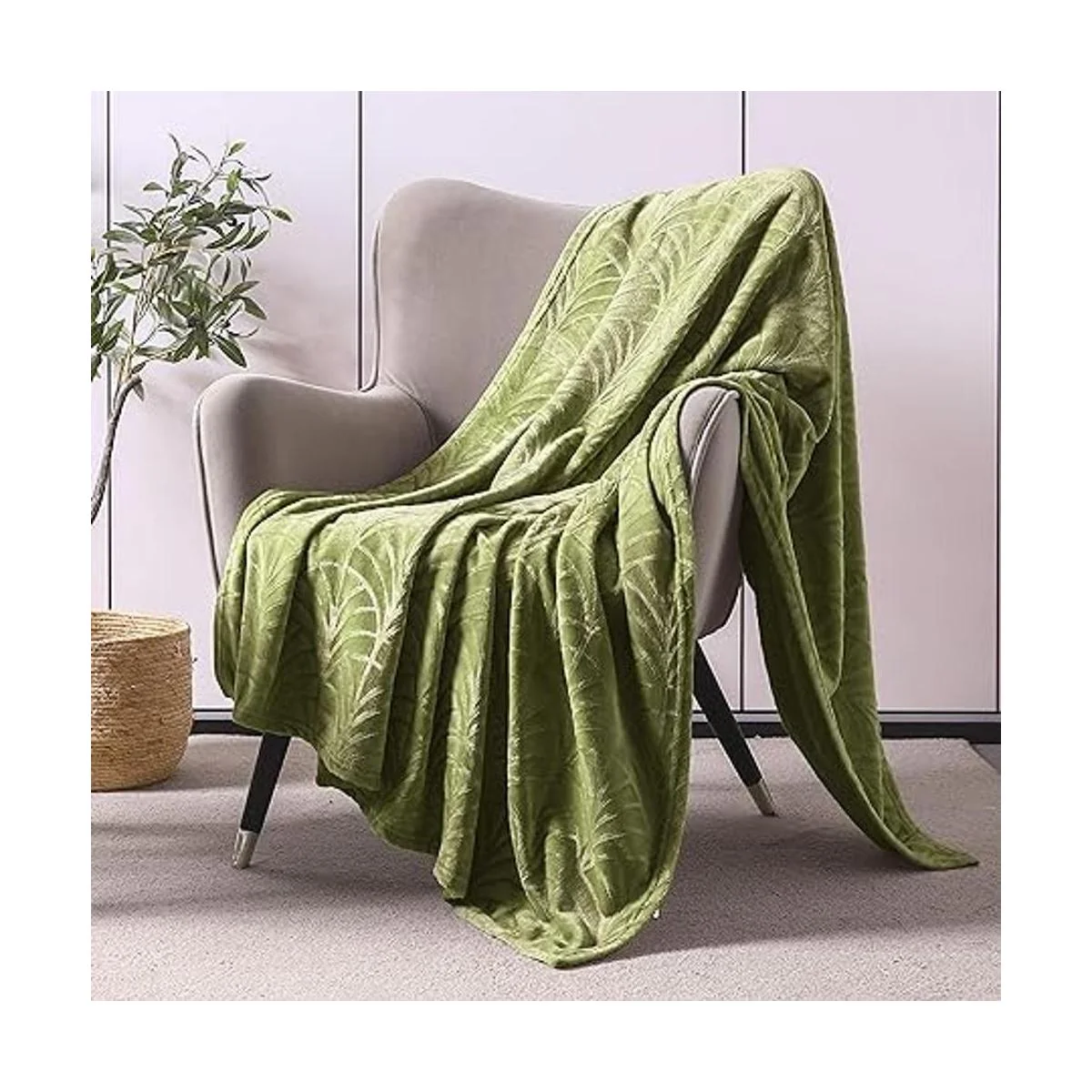 Whale Flotilla, Manta de forro polar de franela 50 x 60 pulgadas para sofá, manta suave de terciopelo con diseño decorativo de hojas de palma, gris oliva.