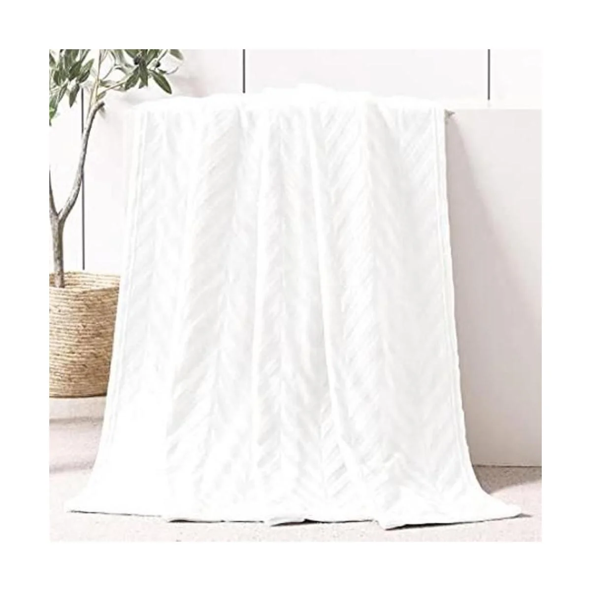 Whale Flotilla Manta de franela, ligera, de terciopelo suave y esponjoso, diseño de cheurón, para el sofá, tamaño de 50 x 60 pulgadas, color blanco