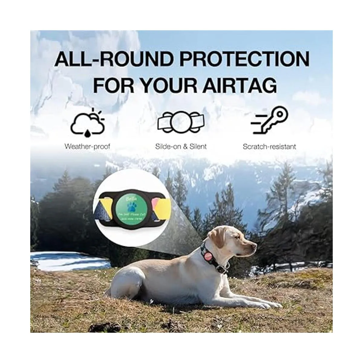 Soporte seguro para Apple Tag: compatible con AirTags, puede sostener la etiqueta de forma segura. Se fija al collar o arnés del perro, el rastreador de Airtag no se saldrá. Rastrea a tus mascotas con menos preocupación con tu Apple iPhone y AirTag.