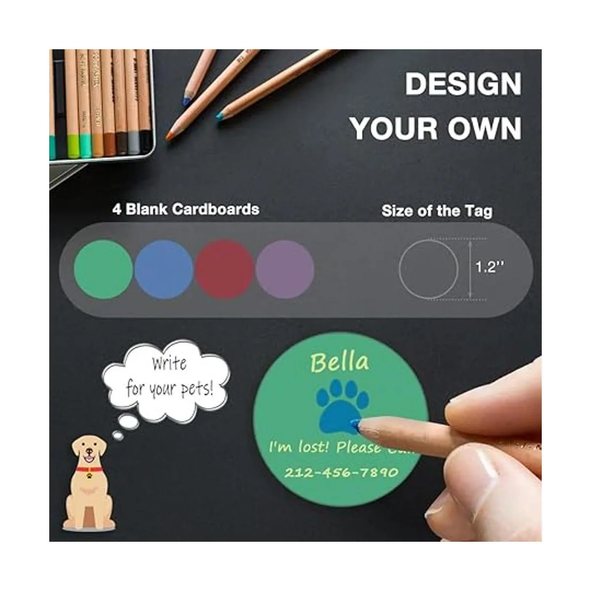 Etiqueta de identificación deslizante para mascotas: la ventana de identificación especialmente diseñada está ubicada en el centro. Puedes personalizar el contenido de la etiqueta a tu manera con 4 cartones en blanco proporcionados. Protegida por las pantallas de policarbonato transparente, la etiqueta es resistente a los arañazos y repelente al agua.