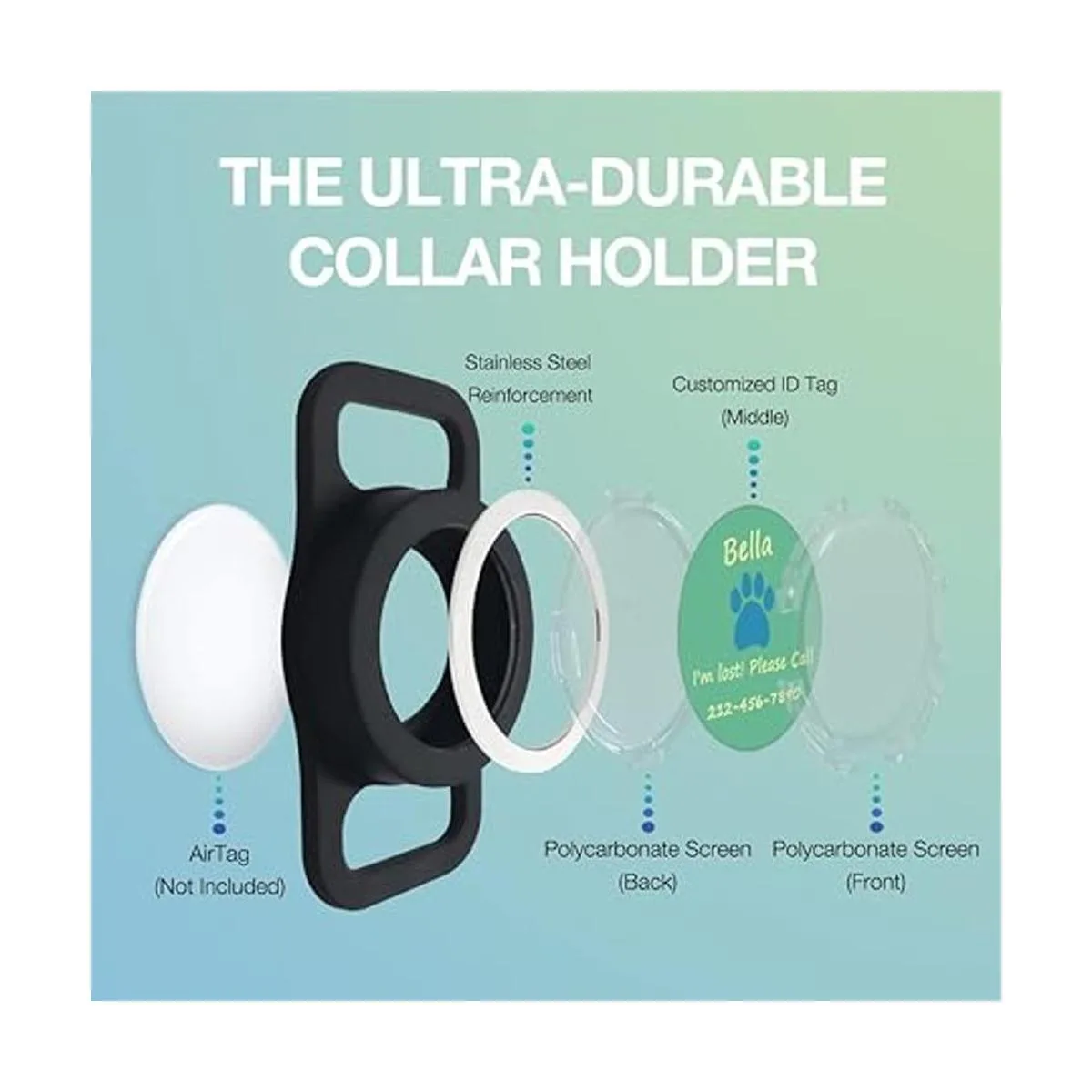 WHALEZON Soporte para collar de perro, funda de silicona para AirTag para Apple Air Tag Tracker, cubierta de etiqueta de aire para collares de mascotas, color negro, grande para collares de 34 a 1 pulgada de ancho