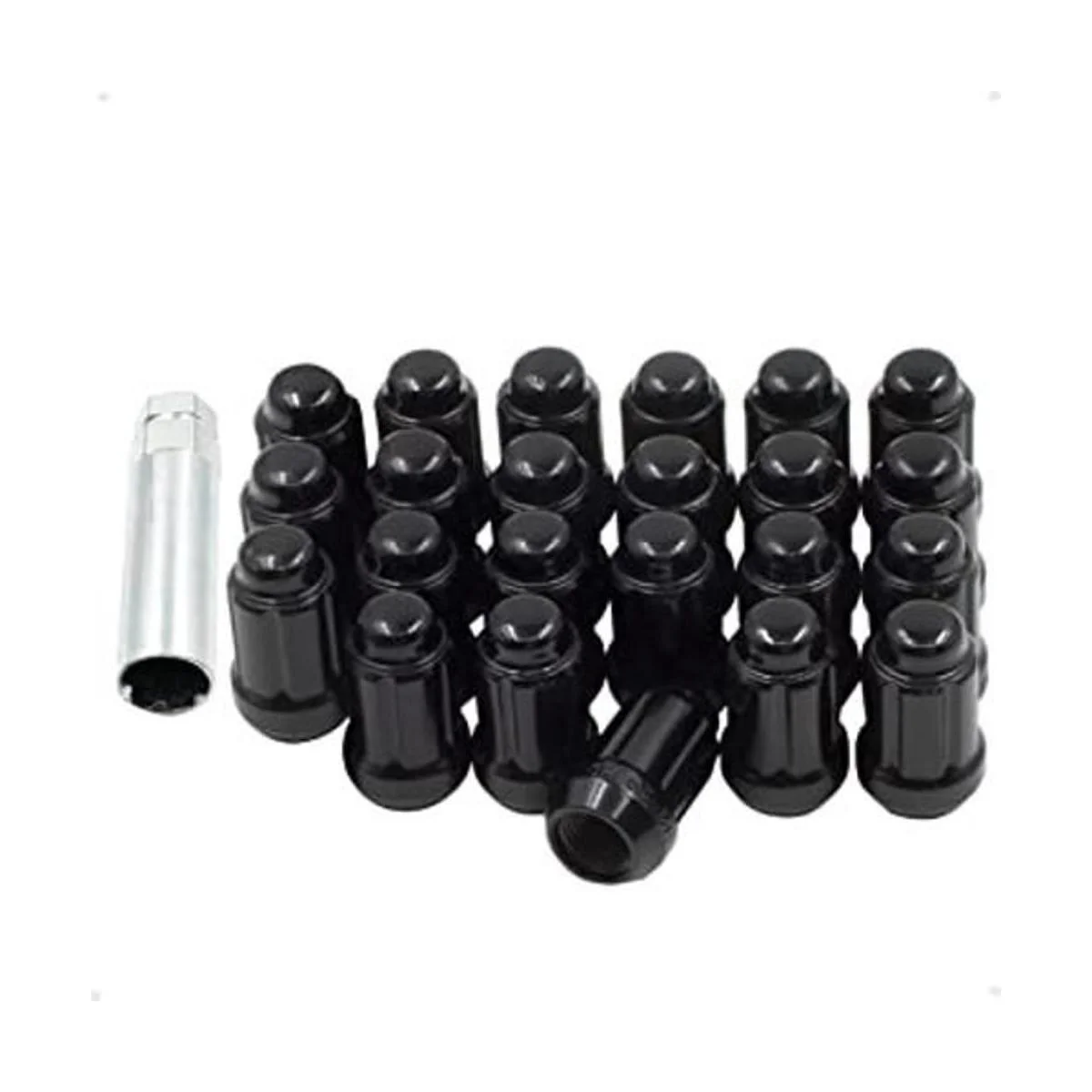 Wheel Accessories Parts Juego de 23 ranuras de camión negras M14x1.5 Bulge Bellota de 1.5 pulgadas de largo con 1 llave de enchufe