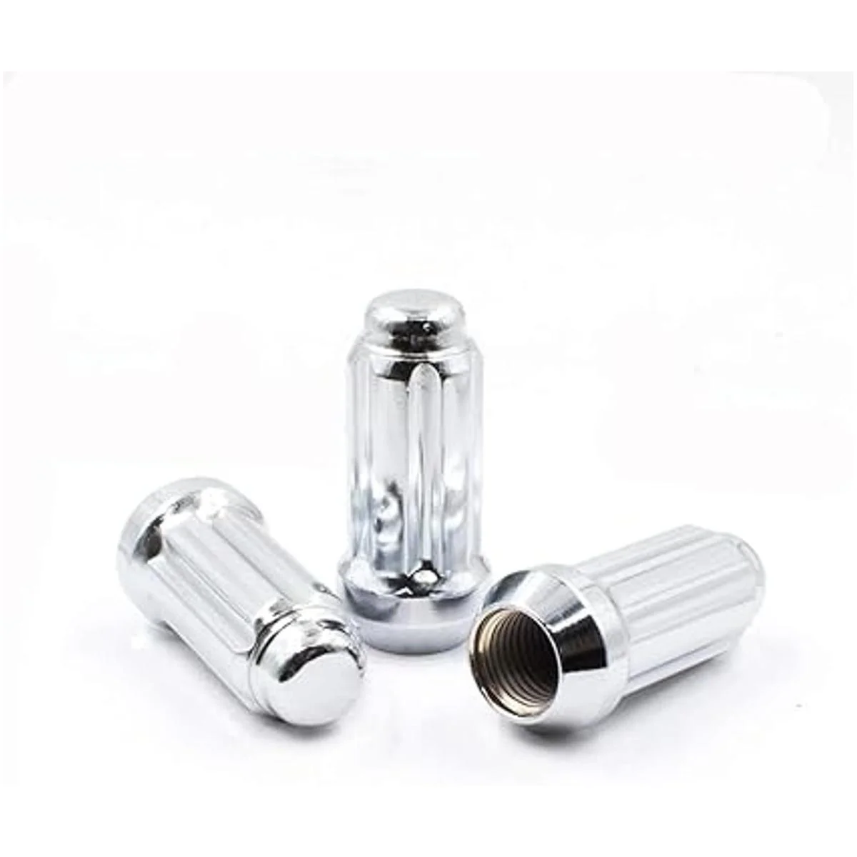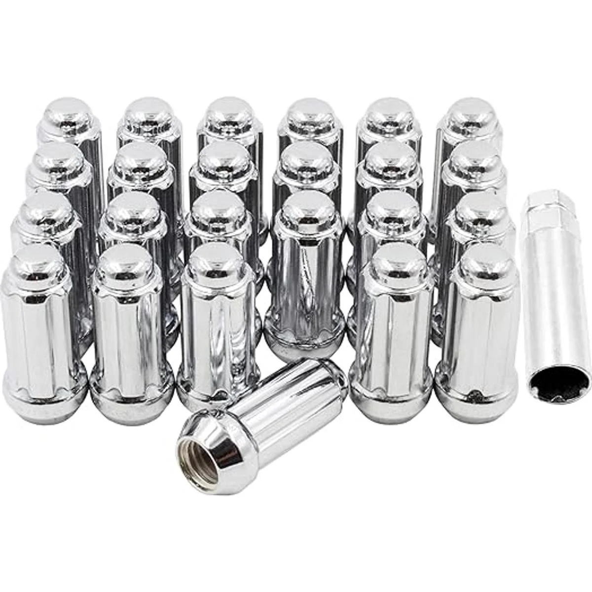 Wheel Accessories Parts Juego de 24 tuercas cromadas de 14 x 1.5 pulgadas para camión estriado, bellota de 2 pulgadas de largo, rosca M14 x 1.5 de diámetro pequeño con 1 llave de enchufe