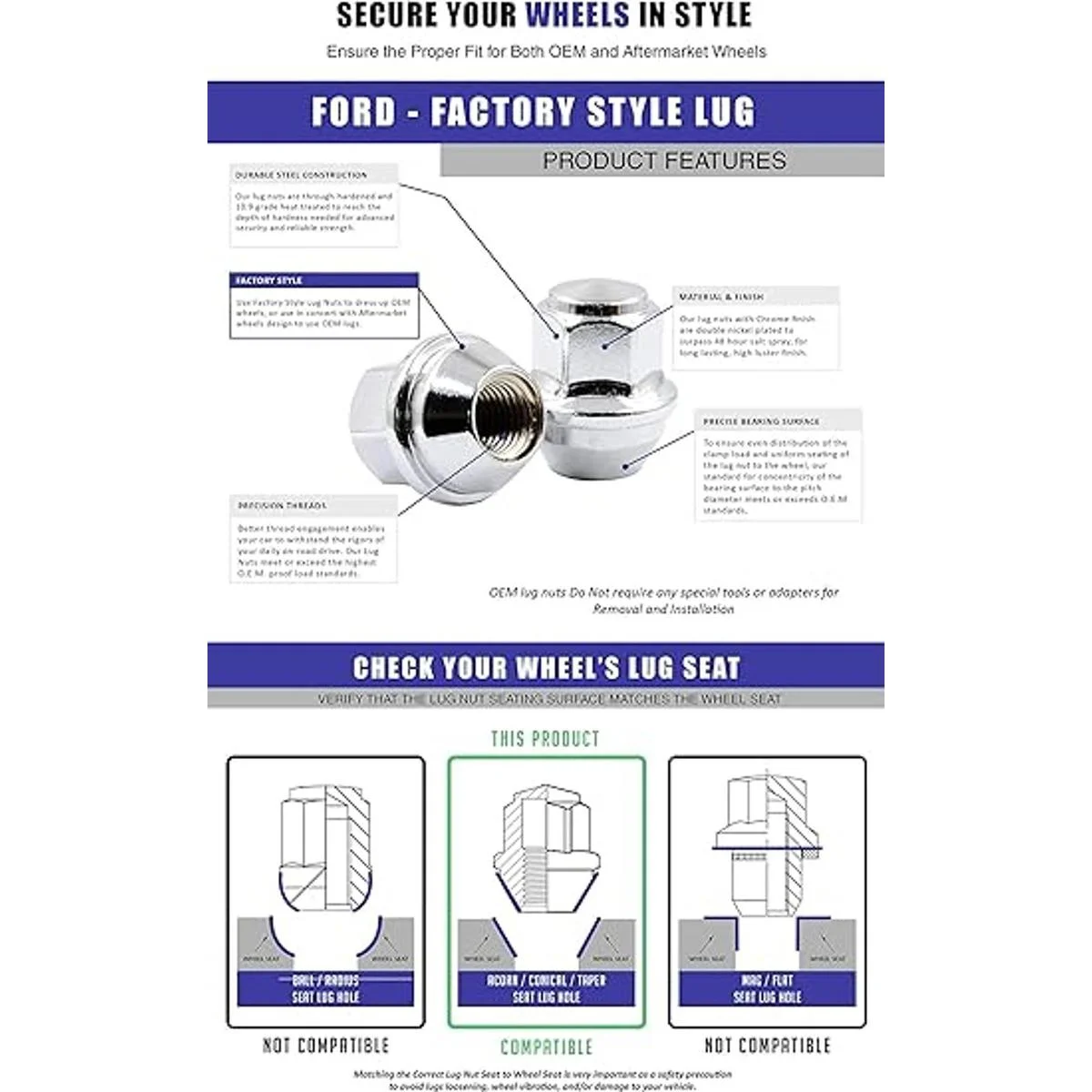 Wheel Accessories Parts Juego de 24 tuercas cromadas M12x1.5 de una sola pieza de repuesto para Ford Escape 20012019, Ford Focus 20122018, Ford Fusion 20062019