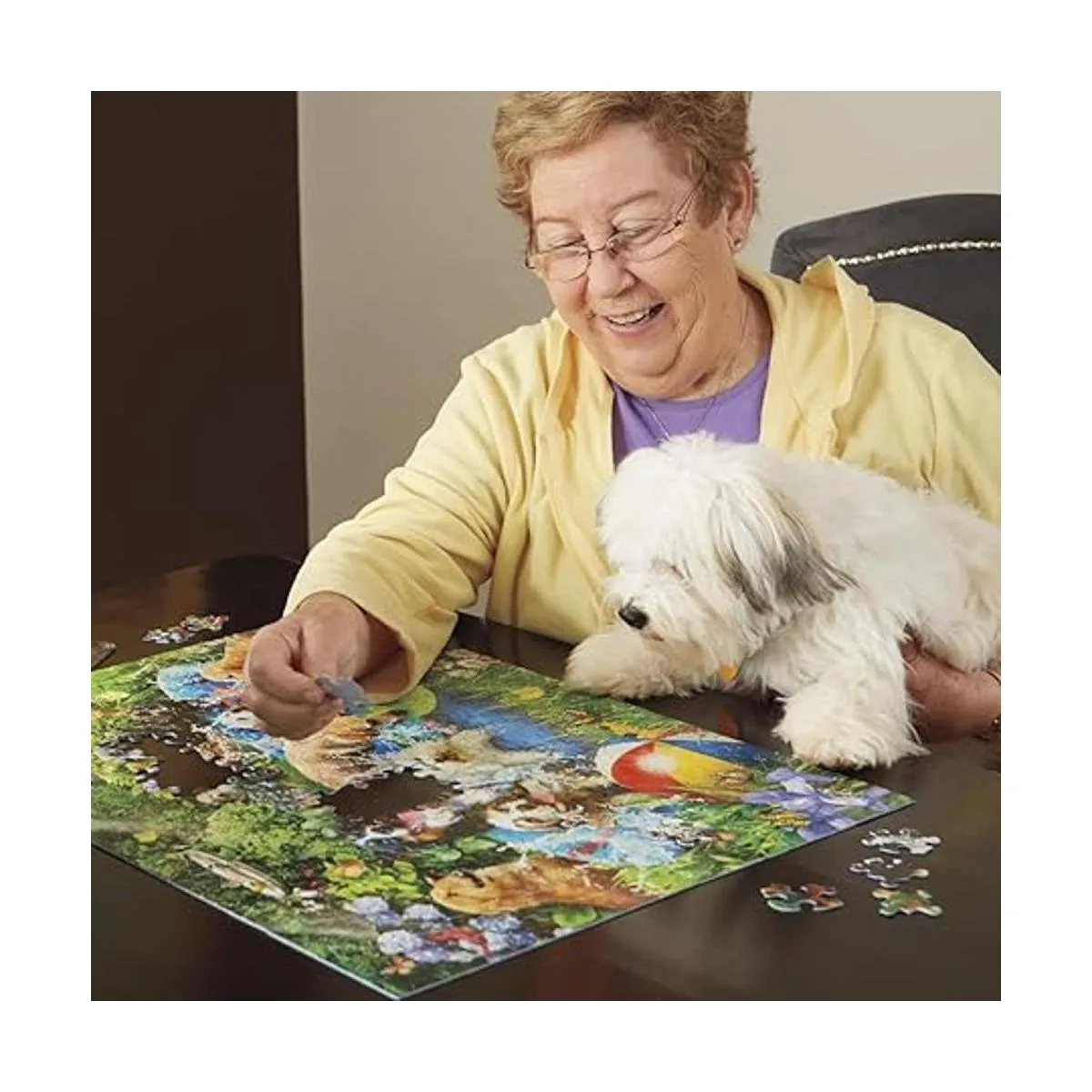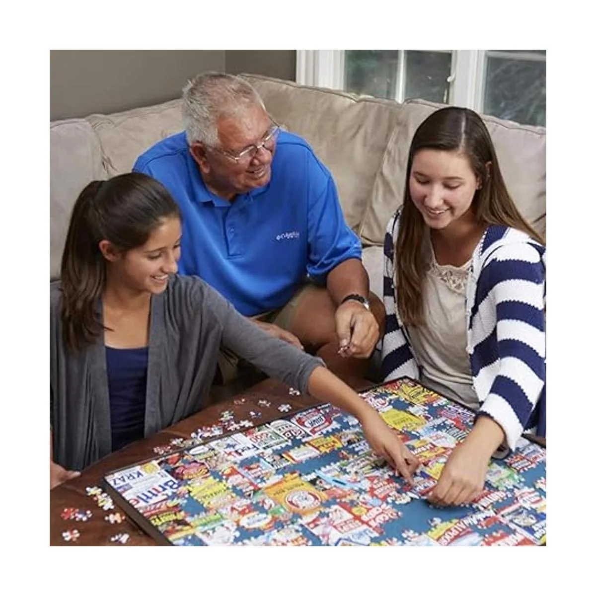 Diseño de alta calidad: este rompecabezas de 1000 piezas contiene piezas gruesas entrelazadas hechas de aglomerado azul reciclado de alta calidad que dan una sensación resistente y fácil agarre. Fabricado en Estados Unidos. Tamaño terminado: 24 x 30 pulgadas.