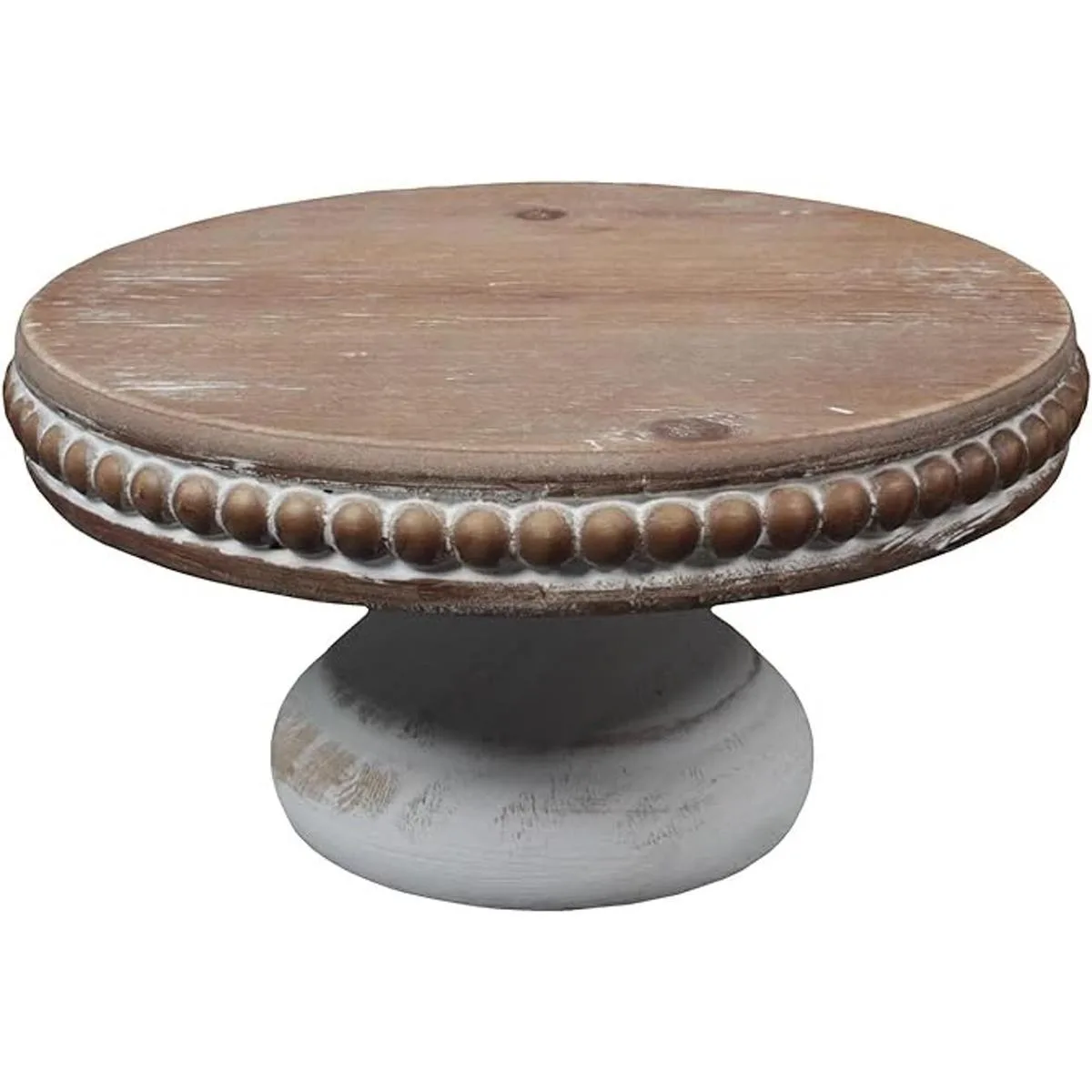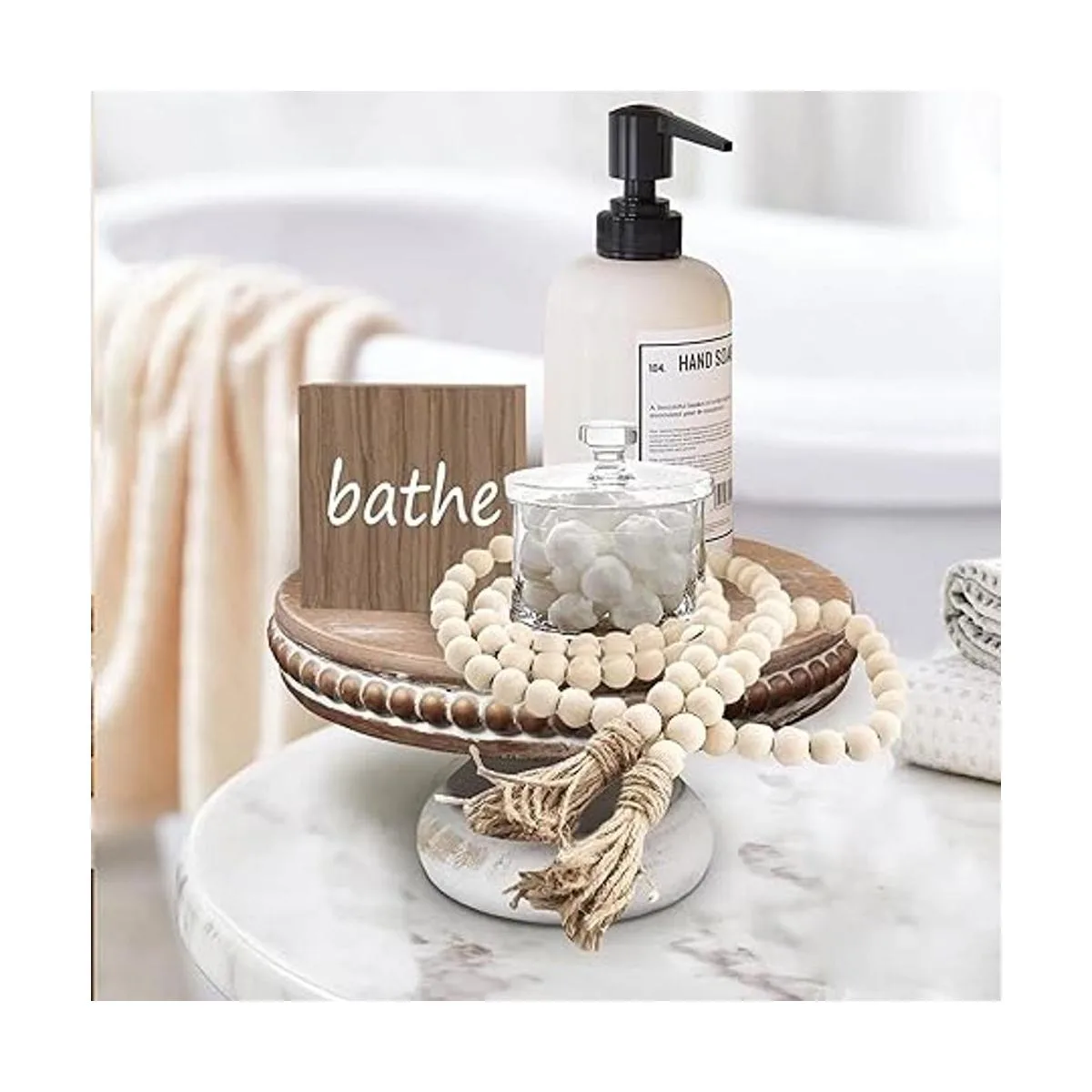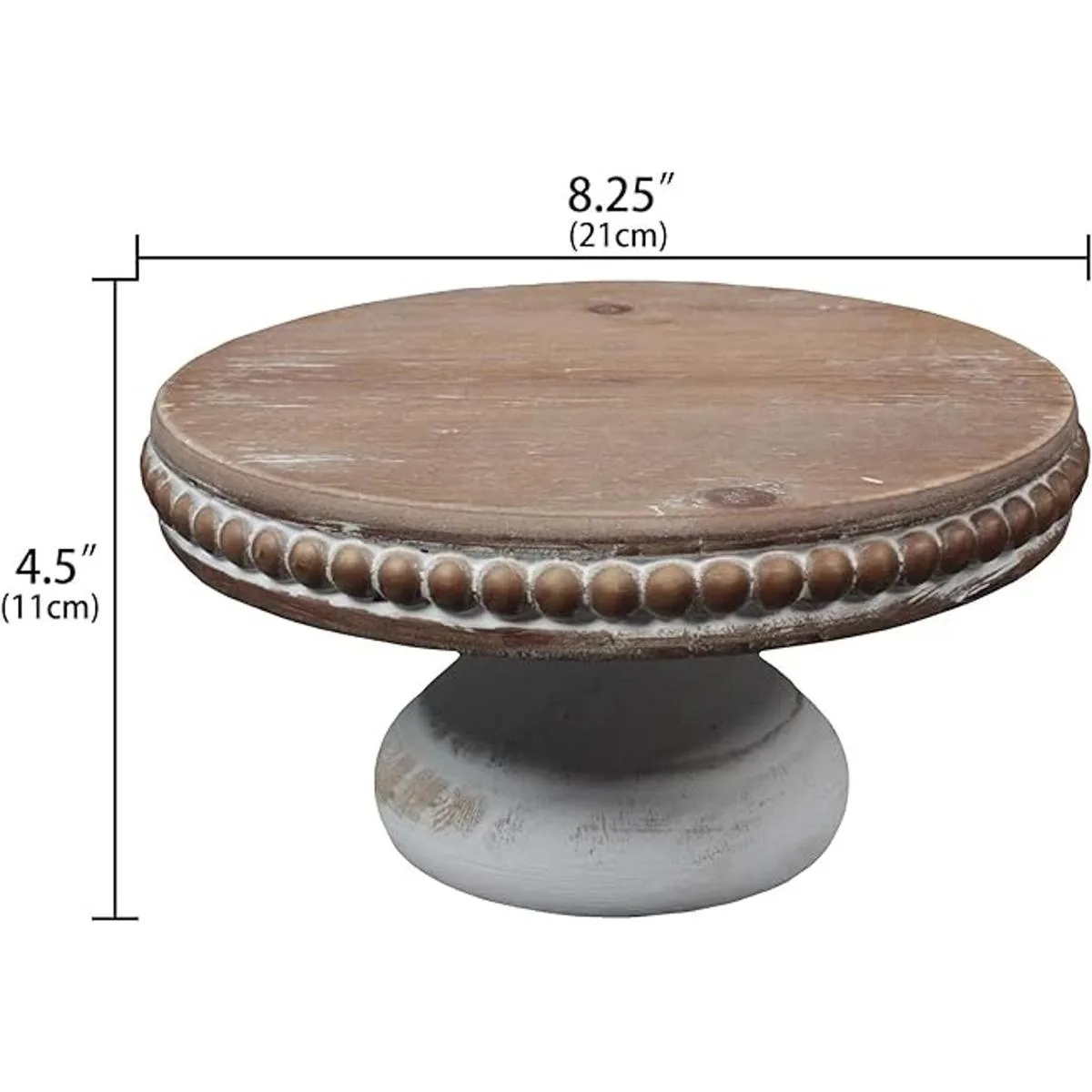 White Wash Elevador de madera con pantalla redonda, 8.25 pulgadas, decoración de bandeja de pedestal Shabby Chic con cuentas, soportes de exhibición de granja para barra de café, baño, isla de cocina