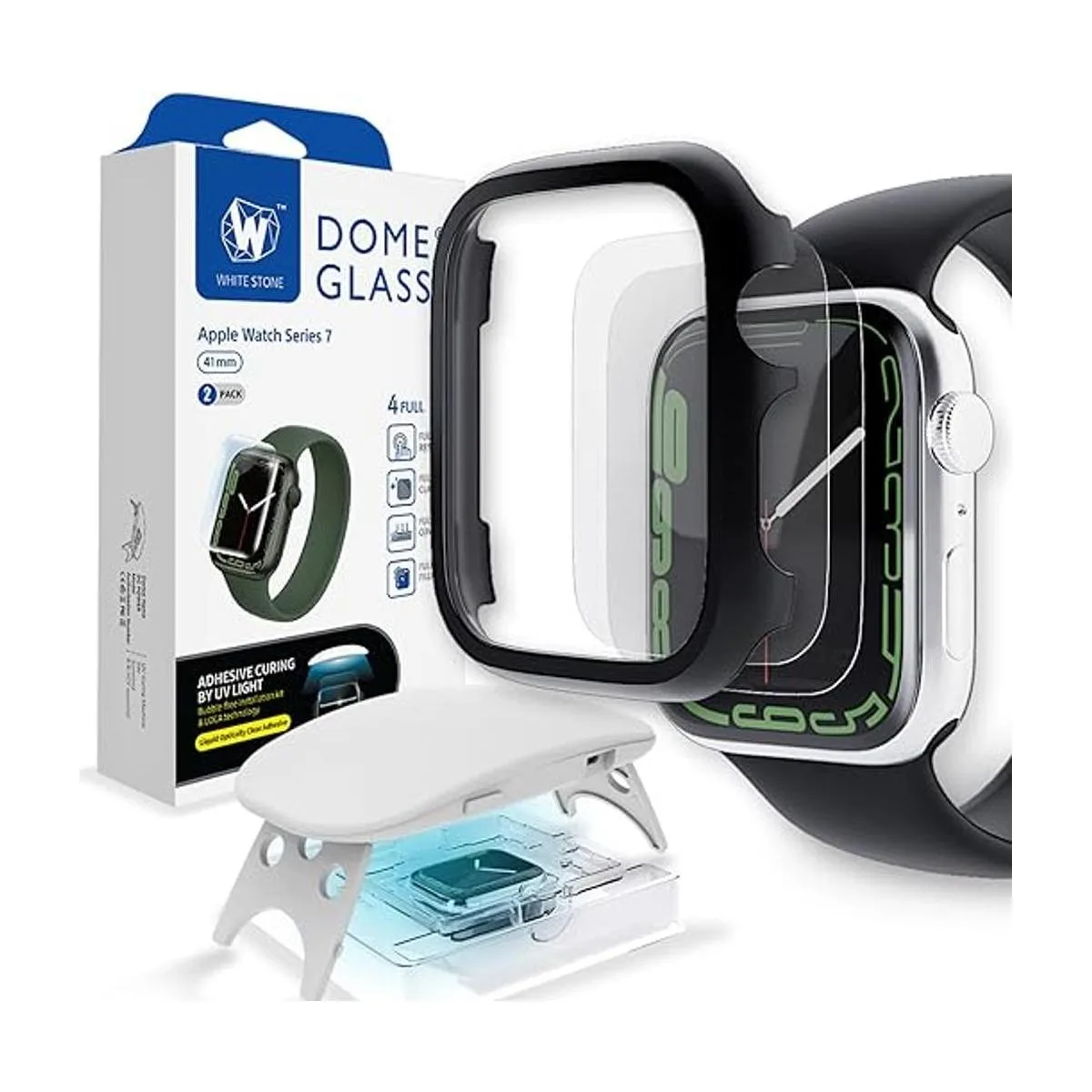Whitestone Protector de pantalla de vidrio templado de 1.614 in tecnología de dispersión líquida con funda de metal para Apple Watch 7 y 8 1.614 in, paquete de dos