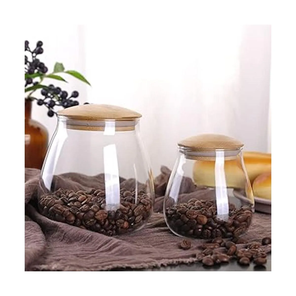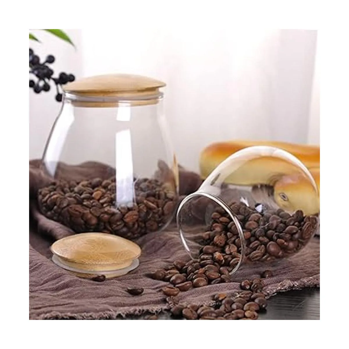Bote simple y elegante: este simple recipiente de cristal transparente con una bonita forma y tapa hermética de bambú. Adecuado para decorar tu hogar y cocinas. También añadirá un toque de amor y armonía a la despensa, restaurantes, exposiciones.