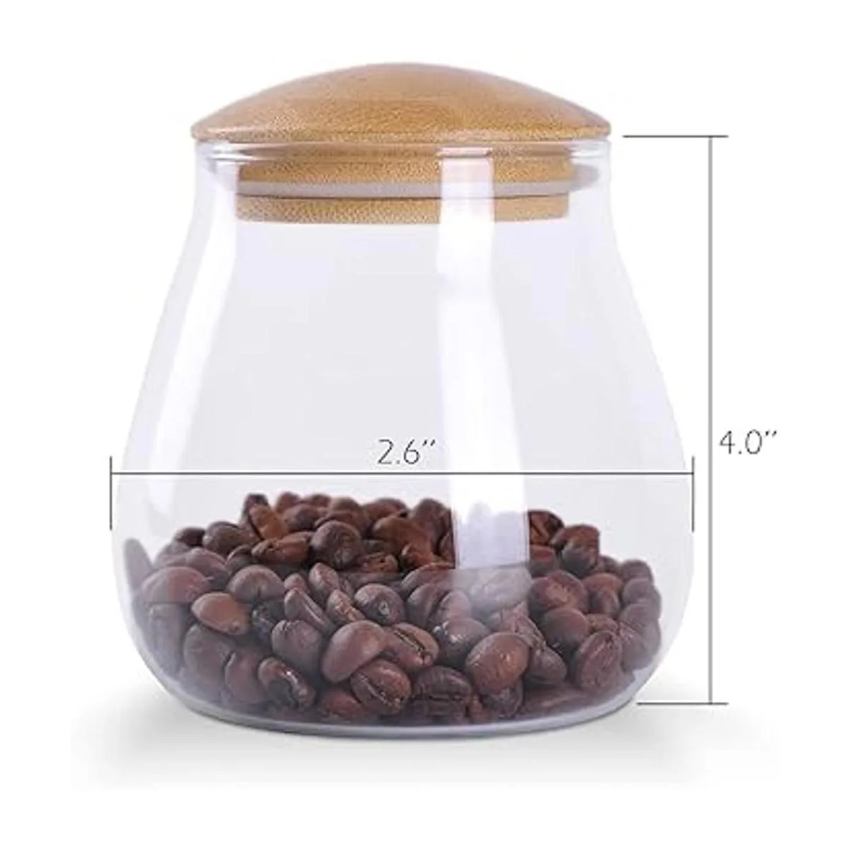 WHJY Recipiente de almacenamiento de vidrio transparente de 13 onzas con tapa de bambú hermética, pequeño y moderno, recipiente decorativo redondo para café, especias, dulces, sal, galletas, condimentos, pimienta, azúcar