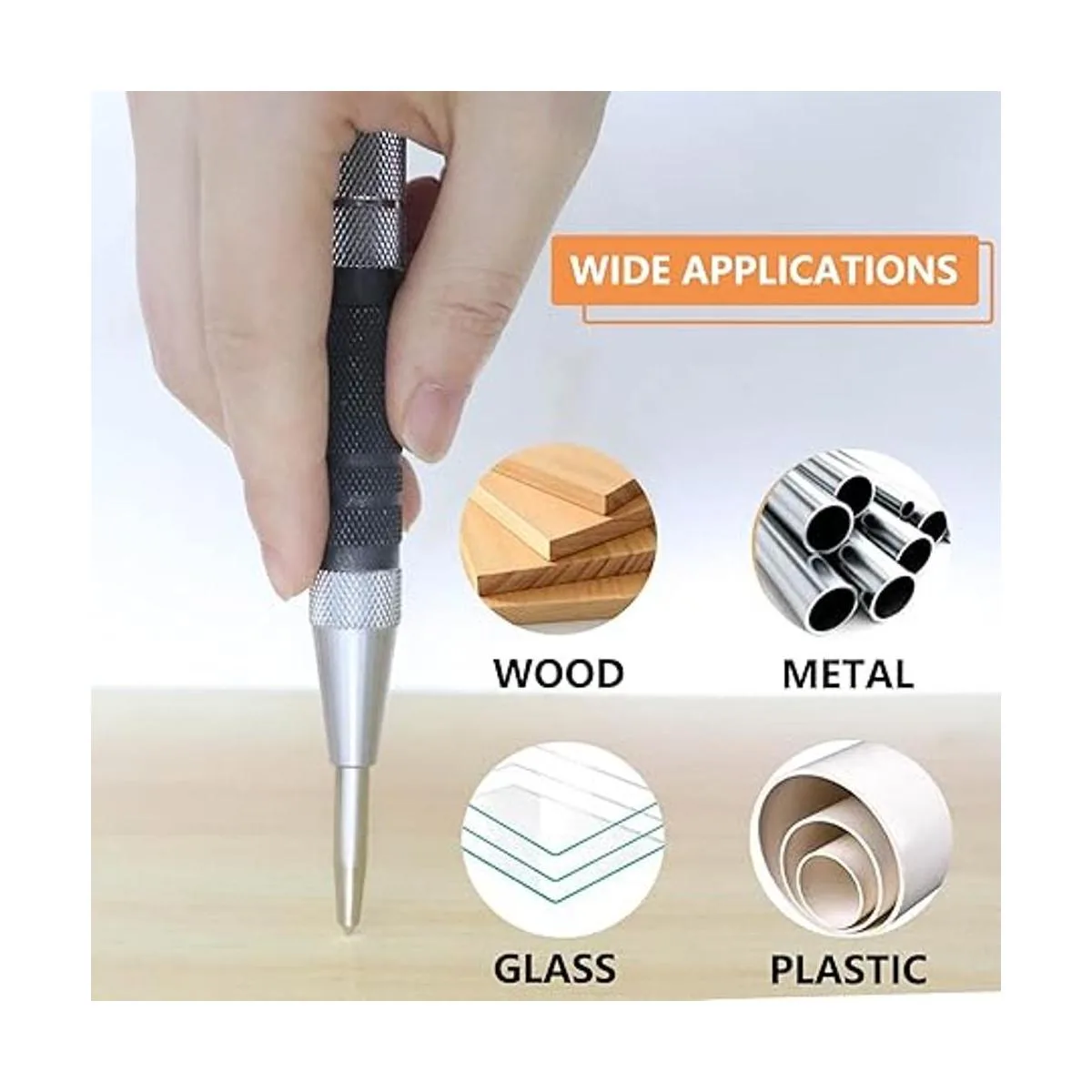 Amplia aplicación: el perforador central automático puede perforar, marcar, escribir y iniciar taladro, clavos o agujeros de tornillo. Se utiliza para proyectos de centrado para madera, acero, vidrio, plásticos, etc. También se puede utilizar como una herramienta de emergencia para romper ventanas