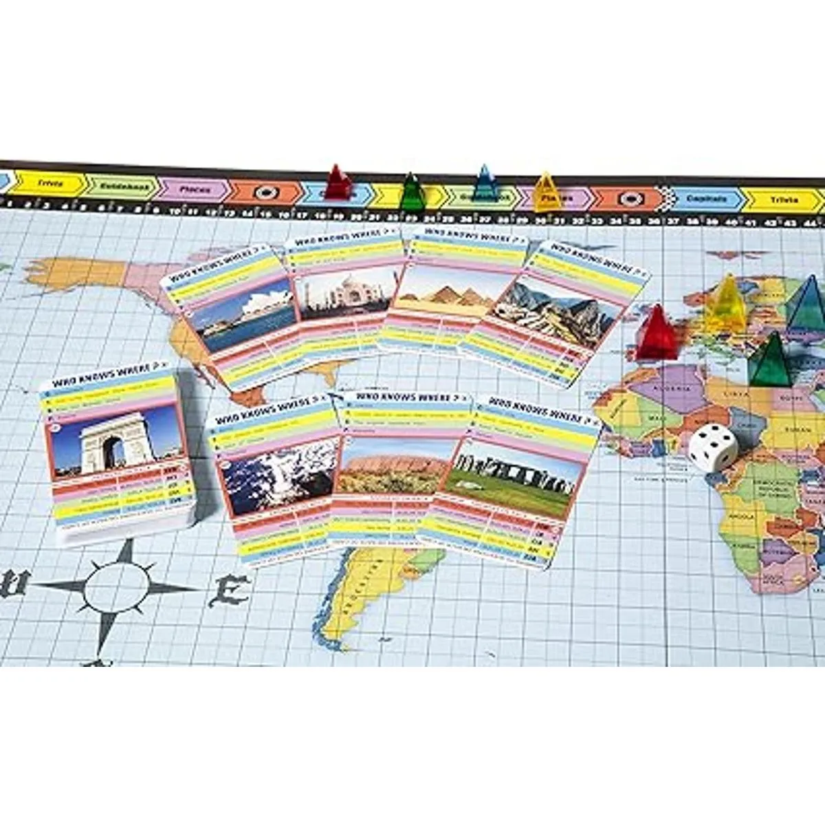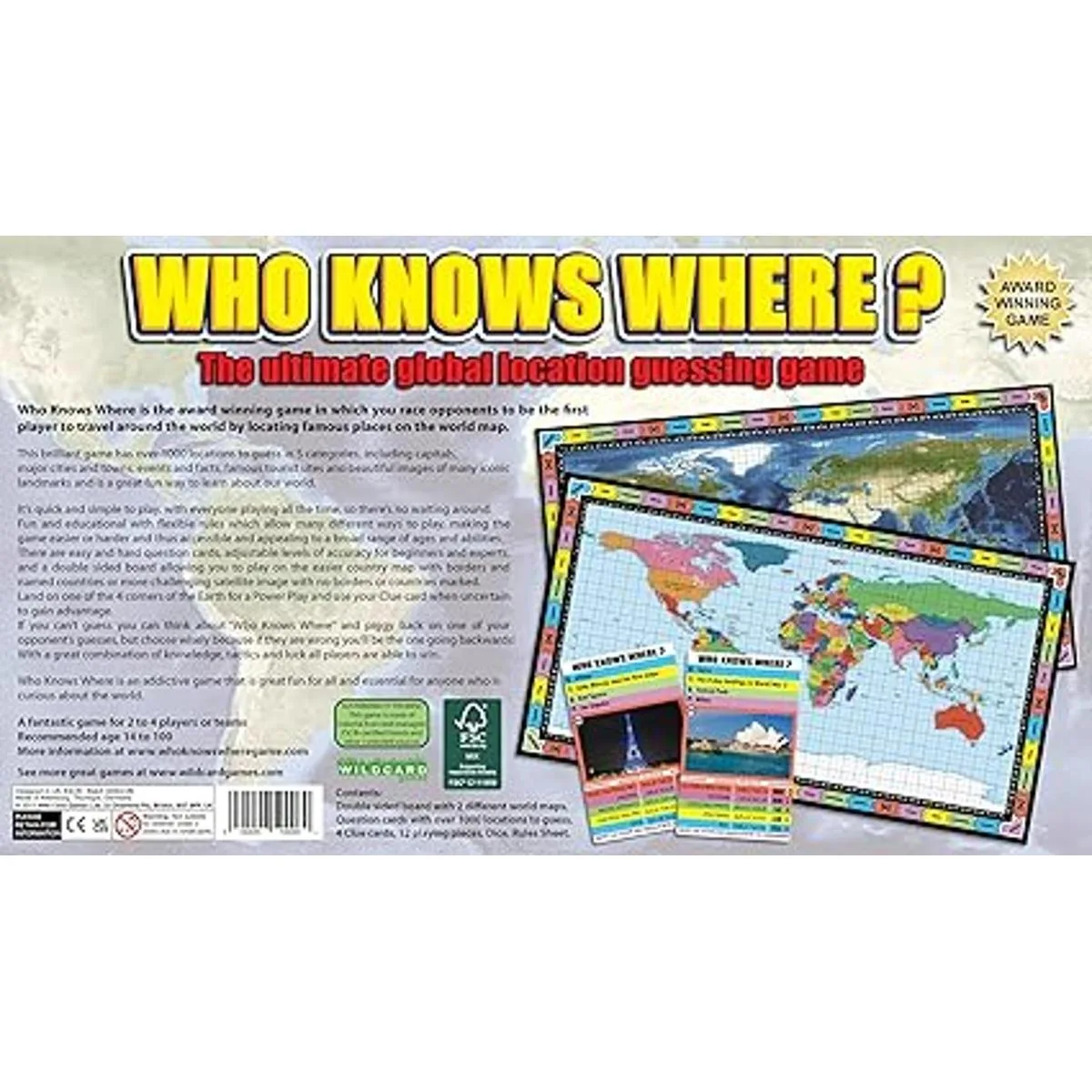 Who Knows Where Juego de mesa familiar educativo The Location Guessing para niños y adultos, donde adivinas ubicaciones geográficas famosas en un mapa del mundo.