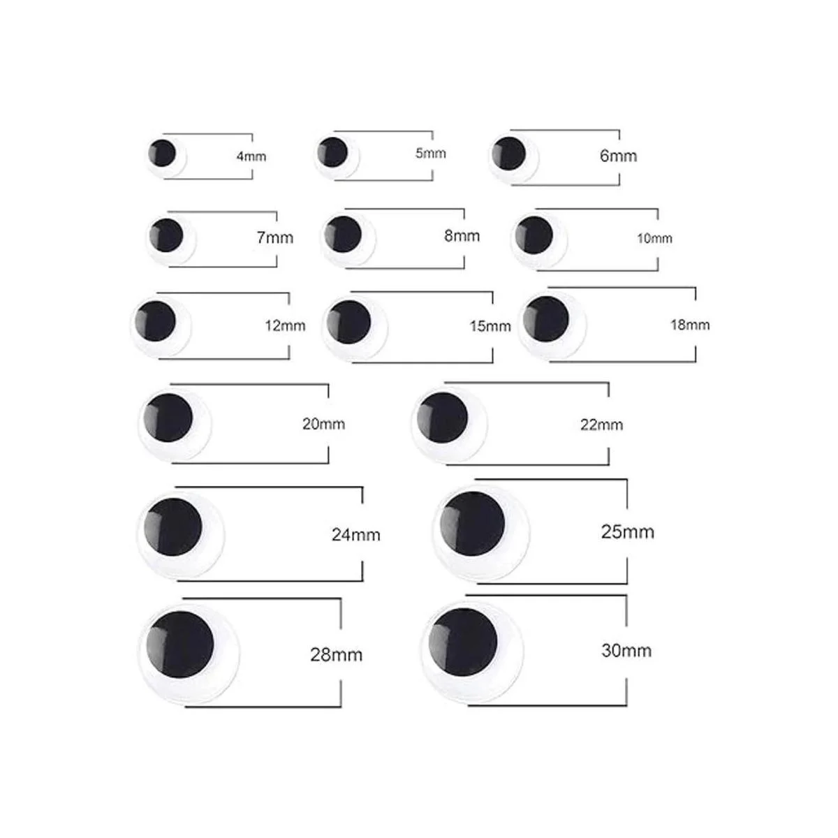 Wiggle Googly Eyes 1500 unidades, color negro con autoadhesivo de 0.116 pulgadas a 1.575 pulgadas mezcladas para manualidades creativas de CCINEE