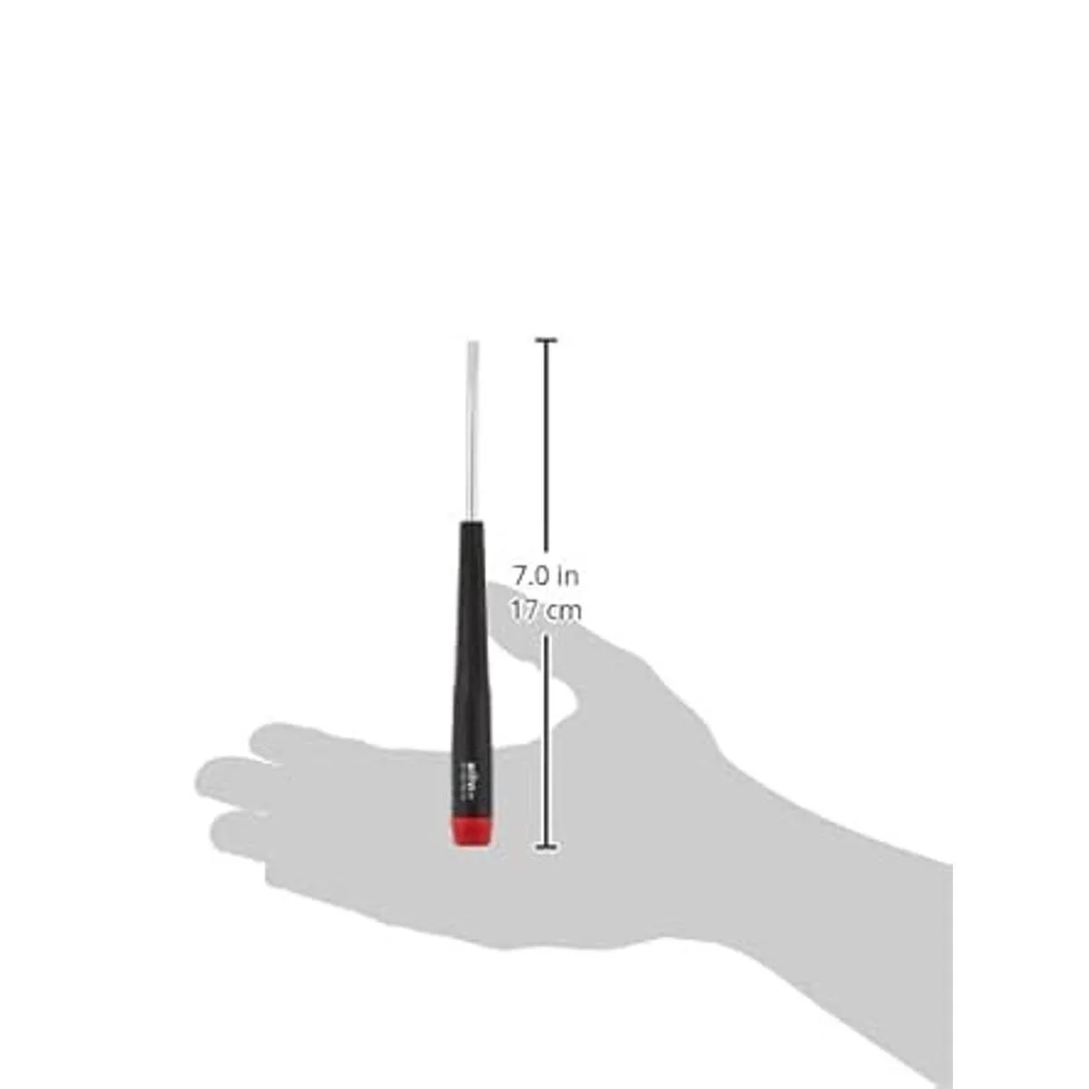 Wiha 26090 Juego de destornilladores de precisión ranurados de 6 piezas incluye ranurado de 1.5, 0.079 x 1.575 in, 2.5, 0.118 x 1.969 in, 3.5, 0.157 x 2.362 in. Hoja de acero al cromovanadiomolibdeno de alta aleación, endurecida, cromada. Tapa giratoria para un giro preciso y control con la punta del dedo. Moldeado en mango cónico permite una rotación rápida. Punta rectificada de precisión para un ajuste preciso. Superficie antideslizante cromada al vapor.