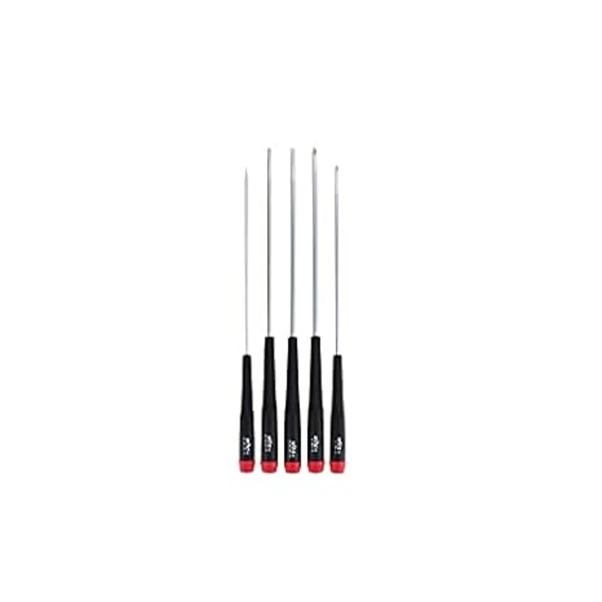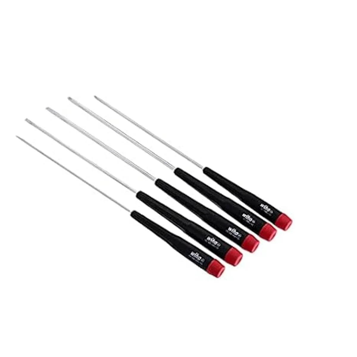 Wiha 26192 ranurado y Phillips juego de destornilladores de precisión extra largos de cinco piezas. Ranurado 0.098 x 5.906 in, 0.118 x 5.906 in, 0.157 x 5.906 in. Phillips 0.000 x 5.906 in, 0.039 x 5.906 in. Puntas mecanizadas de precisión de ajuste preciso. Cuchillas de acero para herramientas CRM72 de alto rendimiento Wiha. A través de endurecido para un rendimiento óptimo de par de torsión micras de vapor duro acabado cromado Asas proporcionadas al tamaño de la hoja delgadas y cónicas. Tapa de control de dedos para un giro preciso.