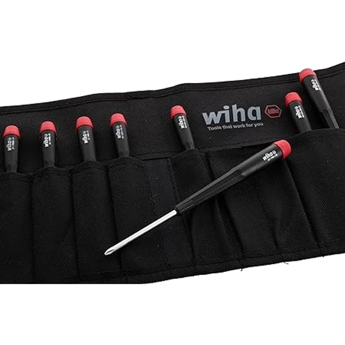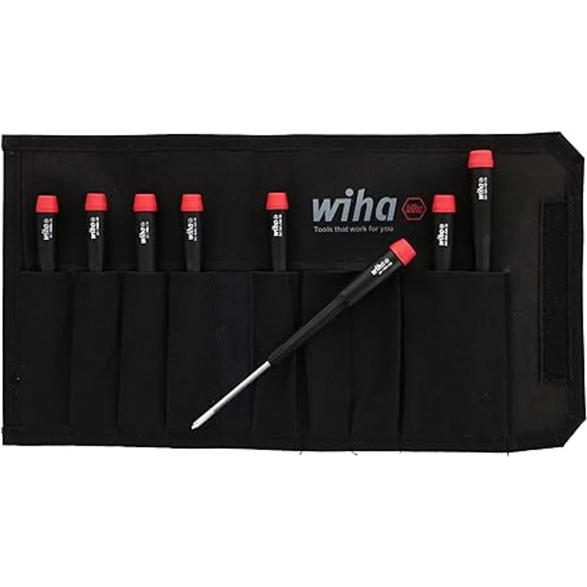 Wiha 26199 juego de desarmadores planos y phillips en estuche de lona resistente, 8 unidades
