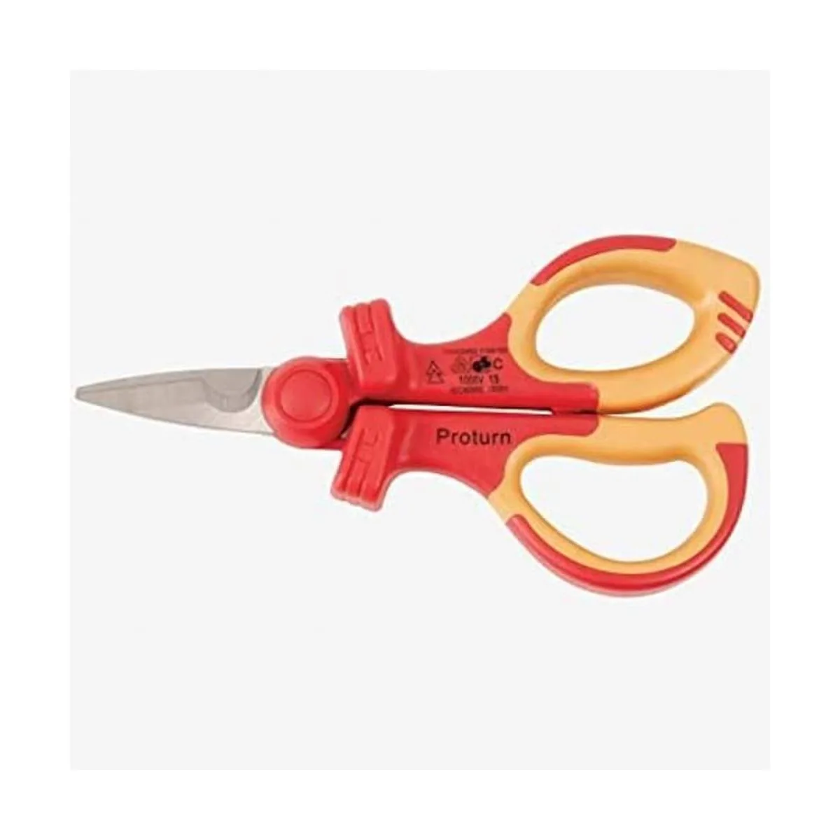 Tijeras de electricista aisladas Proturn 6.299 in OAL. Con muesca para cable. Cuchillas de acero inoxidable.