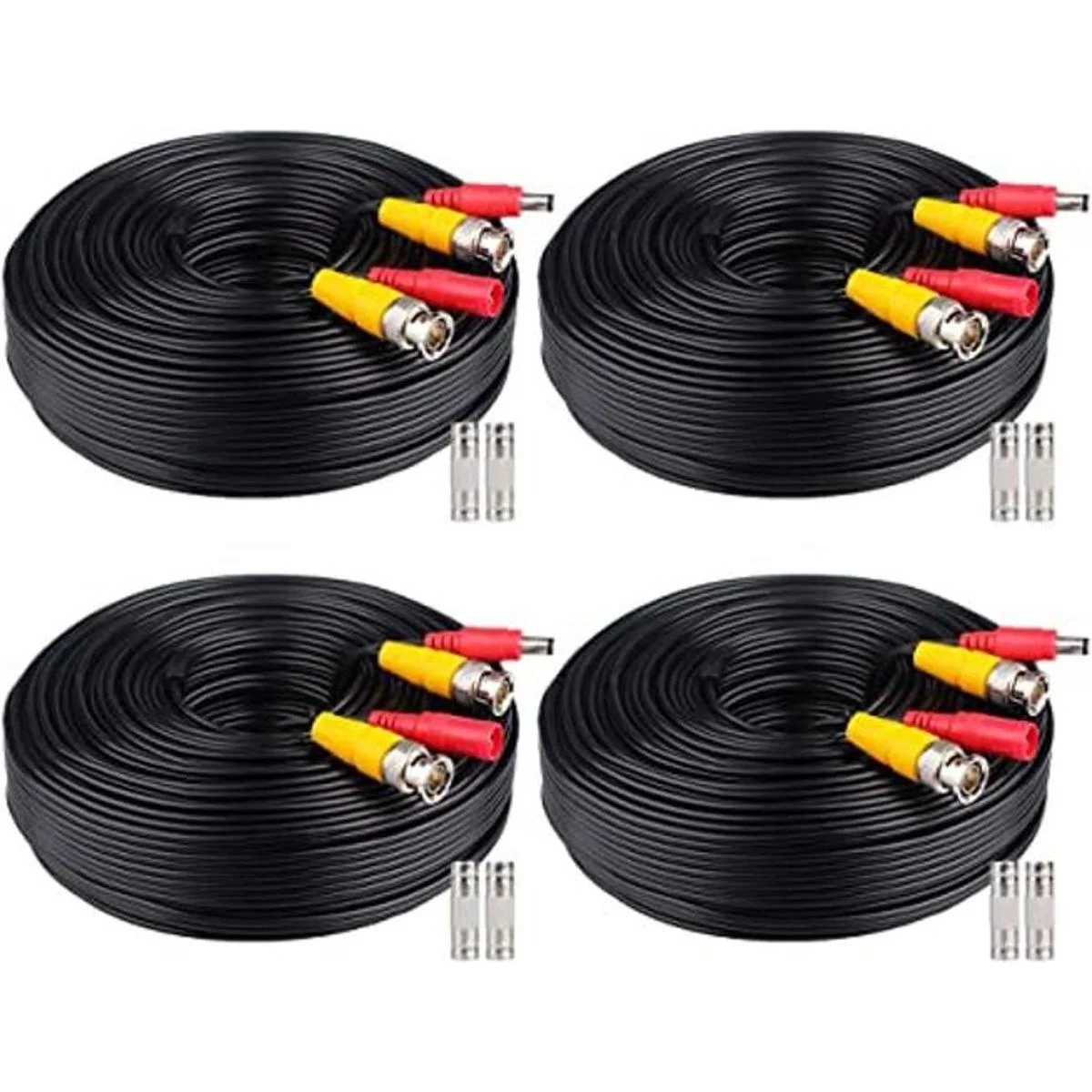 WILDHD Cable BNC de 4 x 100 pies, todo en uno Siamés BNC Video y Power Security Camera Cable Cable CCTV para todos los sistemas de vigilancia Max 5MP HD CCTV DVR 100 pies, paquete de 4 unidades, negro