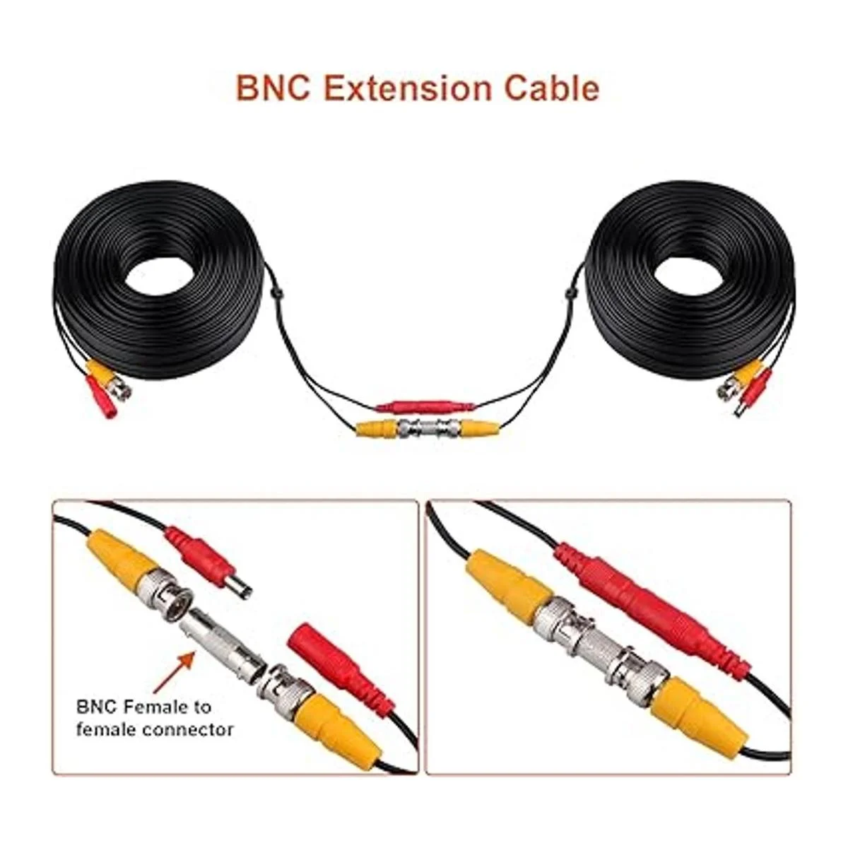 Fácil de usar; el cable de la cámara tiene un cable unido multiusos prefabricado de 100 pies, incluyendo 8 conectores BNC hembra a BNC hembra y 1 kit de clip de cable 100 piezas, adecuado para interiores y exteriores, enchufe y uso