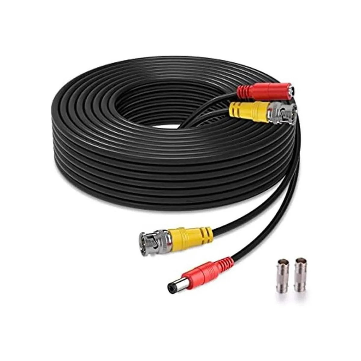 WildHD Cable BNC todo en uno de 150 pies de cable de cámara de seguridad siamés BNC de video y alimentación, cable CCTV con 2 conectores hembra para todos los sistemas de vigilancia Max 5MP HD CCTV DVR cable de 150 pies, negro