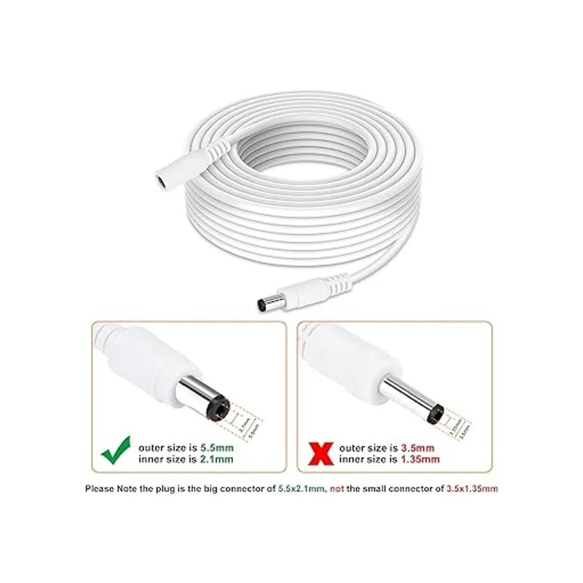 33 pies de longitud, apto para adaptador de corriente de 12 V o dispositivo similar y para cualquier aplicación que requiera entrada CC y acepta enchufe de 0.083 in x 0.217 in, no funciona con otros tamaños.
