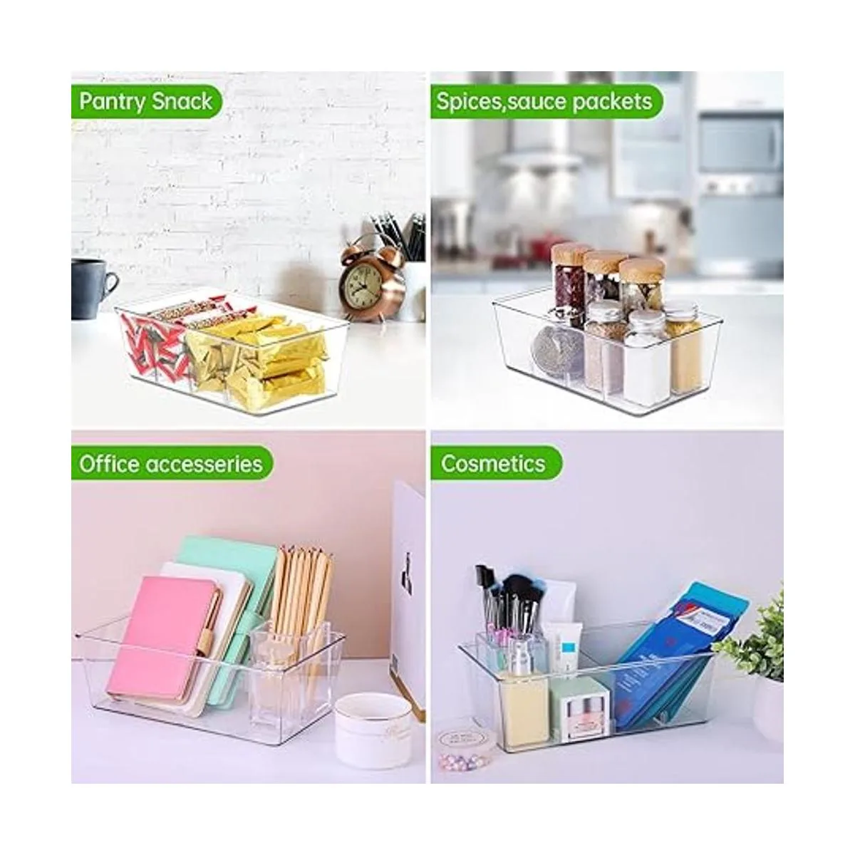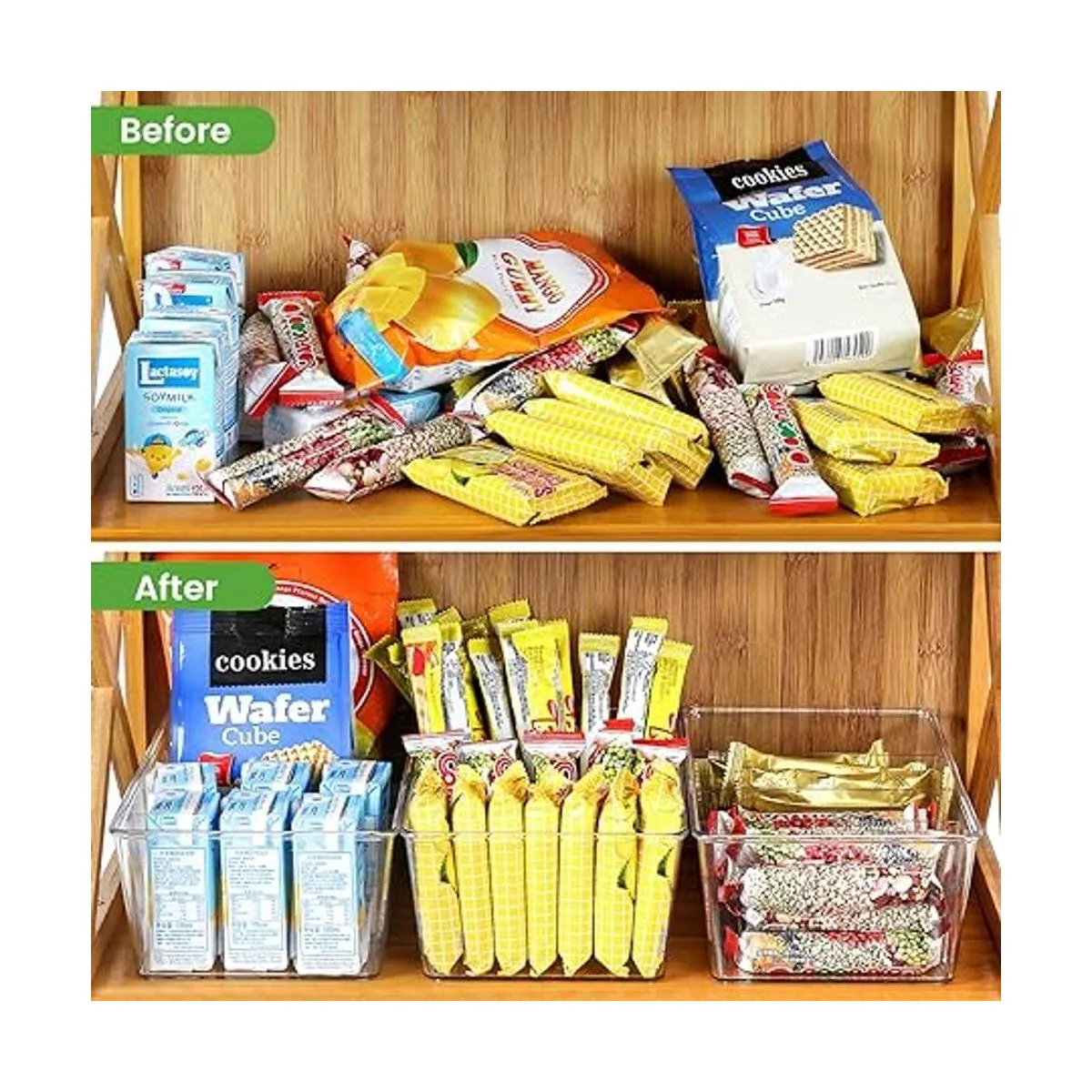 Tamaño ideal y versátil: cada contenedor organizador mide aproximadamente 10.4 pulgadas de largo x 6 pulgadas de ancho x 3.4 pulgadas de alto, cabe perfectamente en la despensa, también es adecuado como organizador de nevera, organizador de gabinete, organizador de cajones, organizador de baño y organización y almacenamiento de cocina. Su versatilidad se extiende a alimentos, manualidades, herramientas, cualquier objeto pequeño.