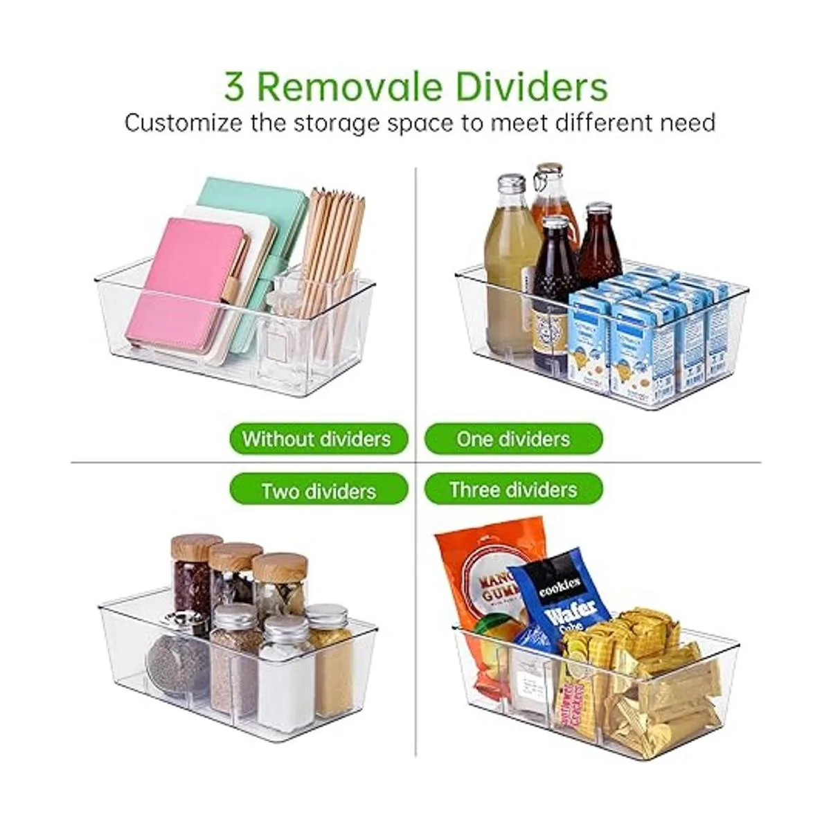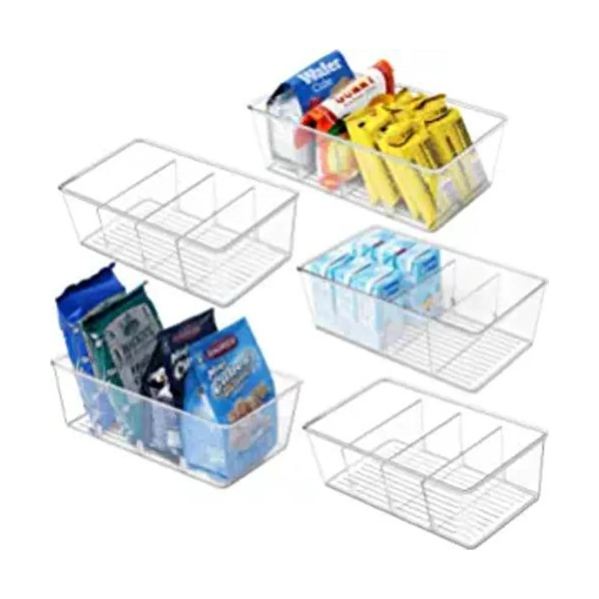 Wilfox Organizador de despensa, paquete de 5 contenedores organizadores transparentes con separadores extraíbles para despensa, cocina, nevera, gabinete, contenedores apilables de almacenamiento para aperitivos, bolsas, paquetes de especias