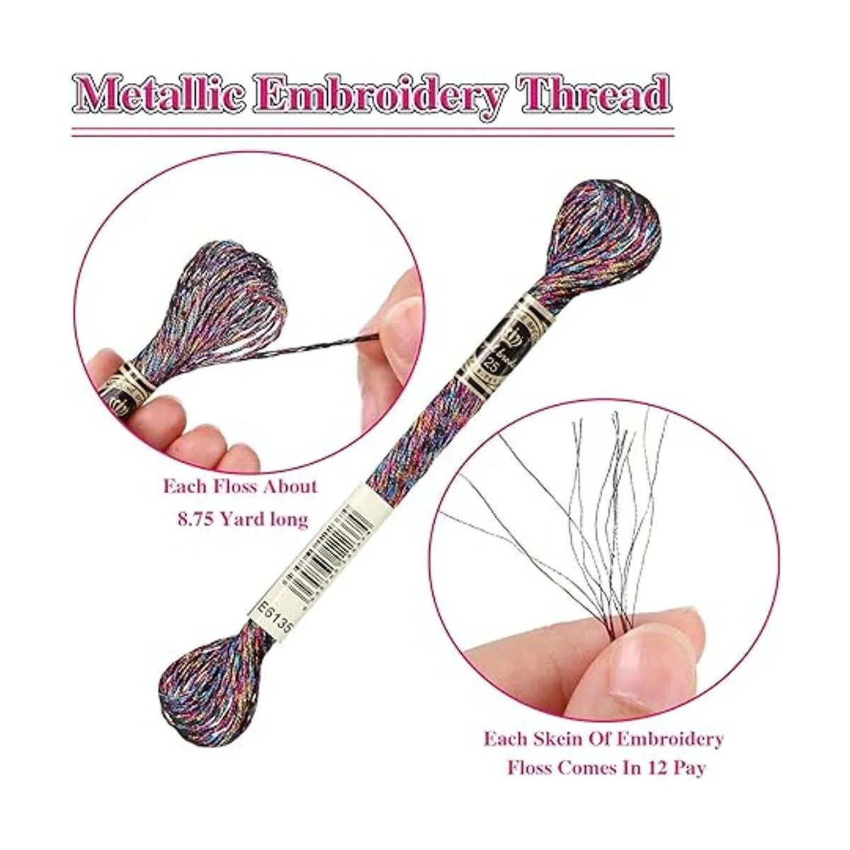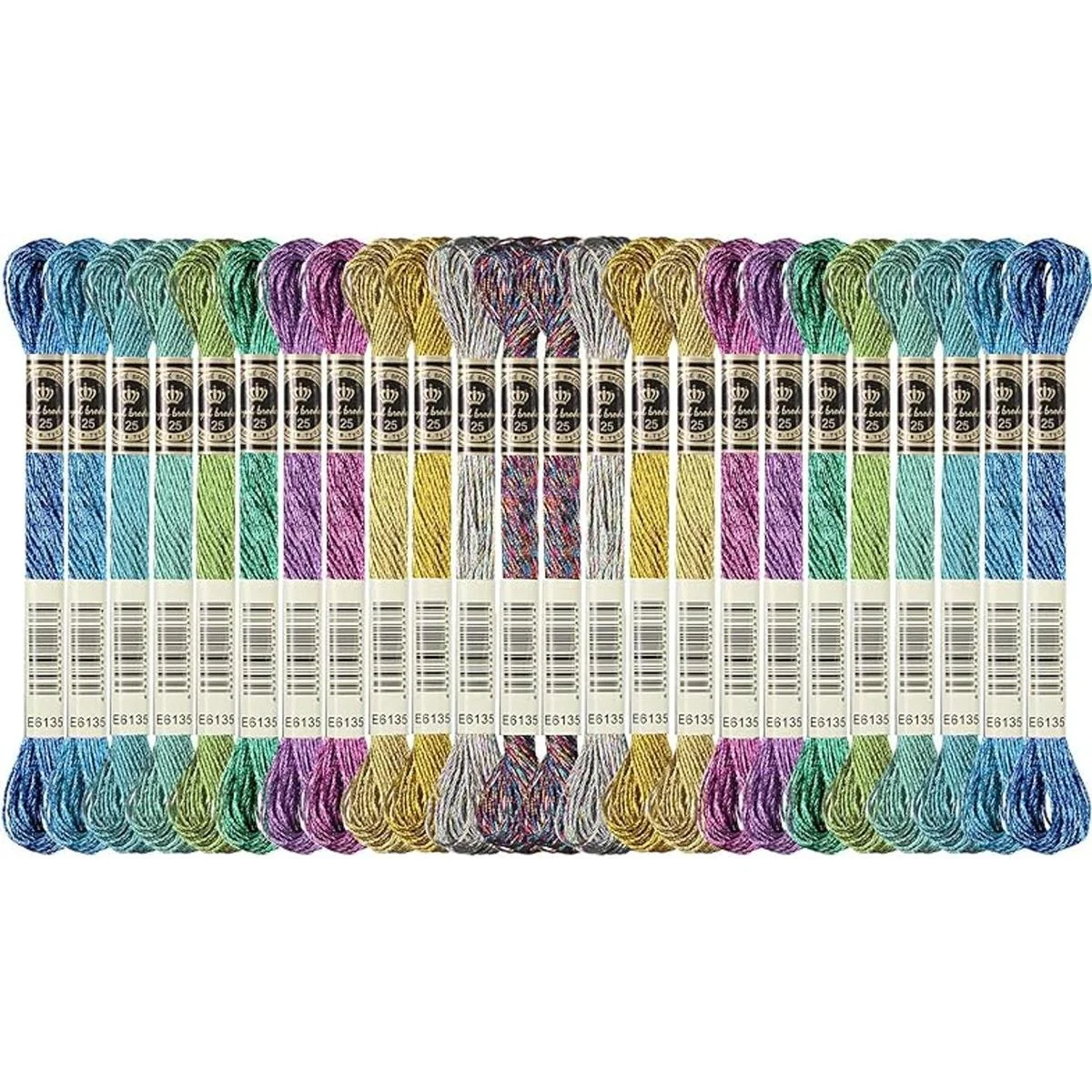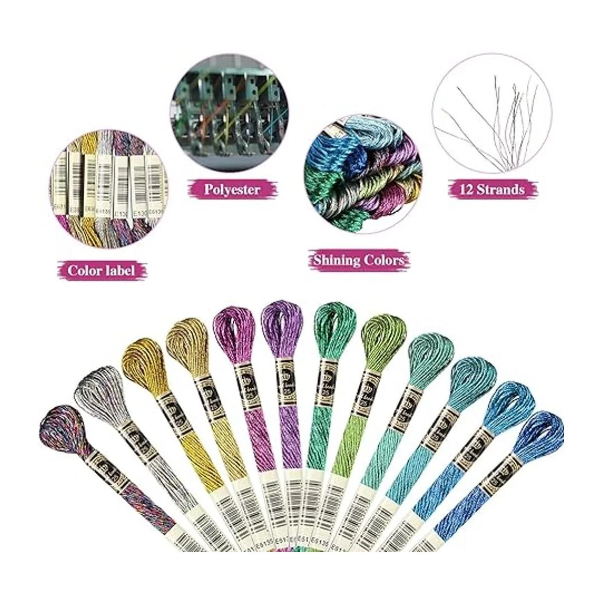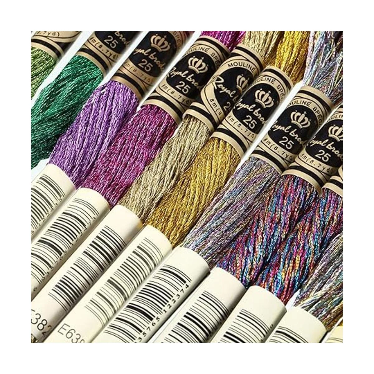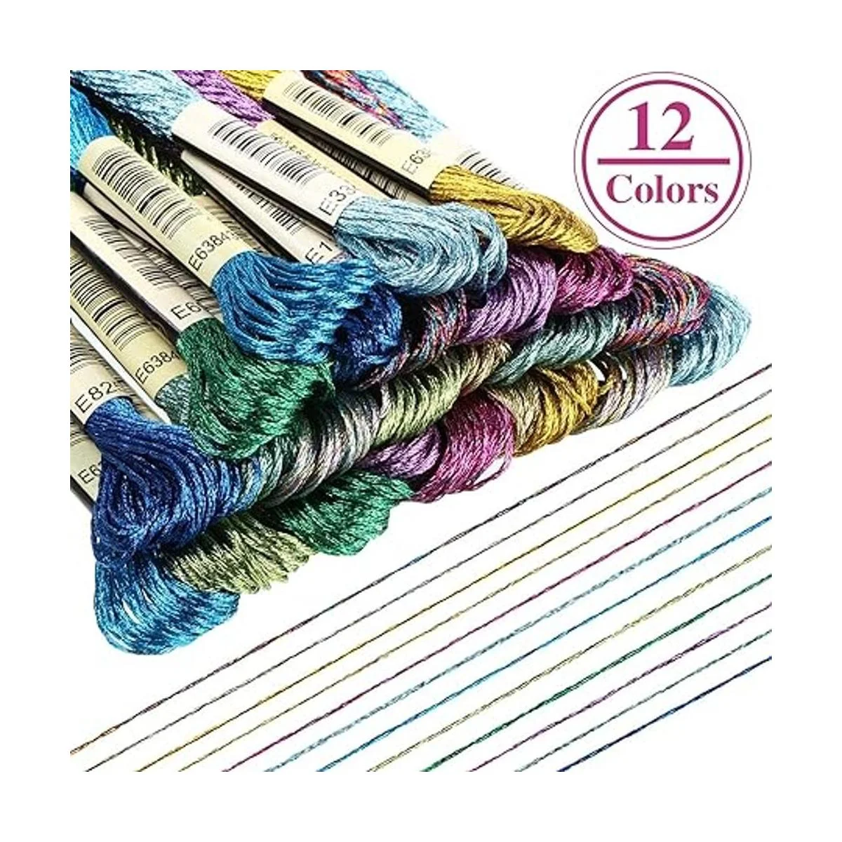WILLBOND 24 hilos metálicos para bordar, hilo de bordado multicolor, hilo de bordado con purpurina, hilo de poliéster, punto de cruz, para pulseras de amistad, manualidades, hilo de bordado, manualidades