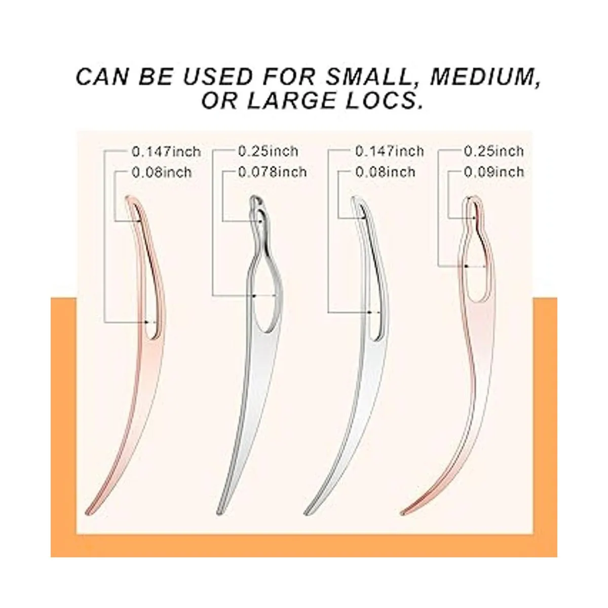 WILLBOND 4 piezas de herramienta de reapriete Sisterlock, herramienta de rastas, aguja de ganchillo de rastas, rastas de aguja de ganchillo, extensiones de cabello de aguja de ganchillo de temor, herramientas de peinado para mantenimiento de localización oro rosa, plateado
