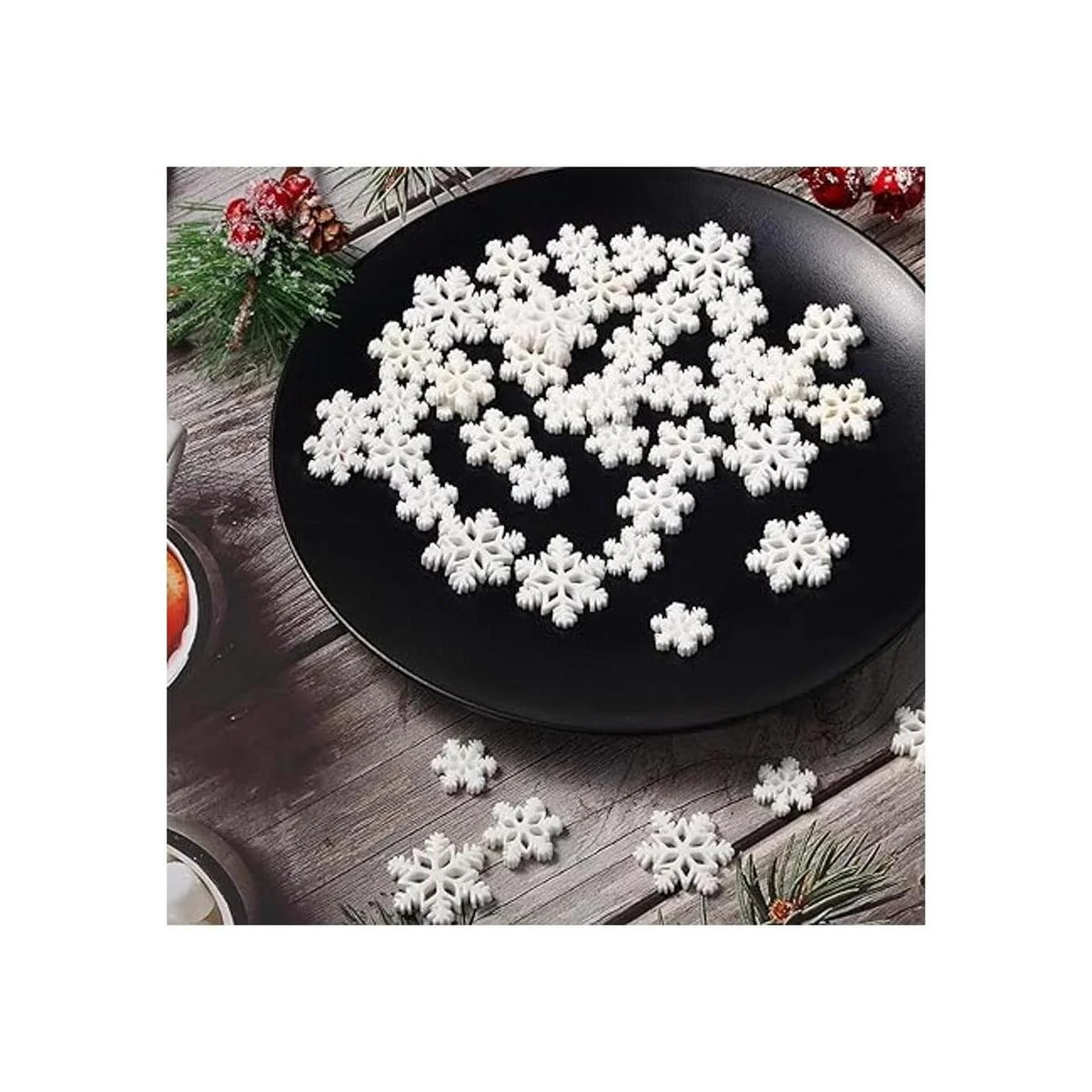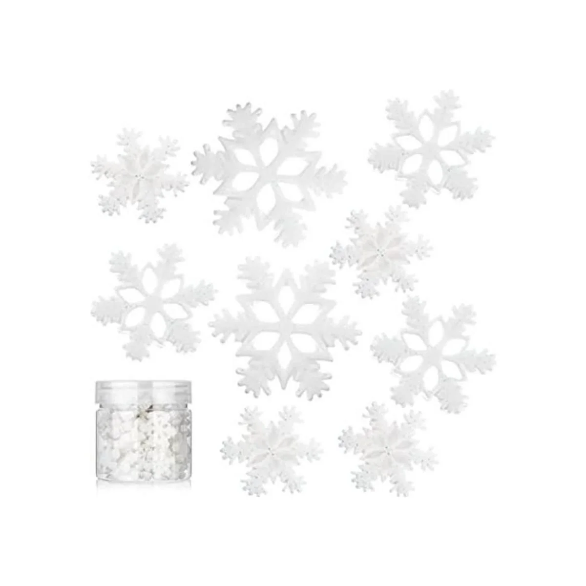 WILLBOND 50 piezas de mini copo de nieve para manualidades, pequeños copos de nieve de resina, pequeños adornos de Navidad, decoración de manualidades en forma de nieve con caja de almacenamiento para fiestas de invierno, manualidades, decoración del hogar, 3 tamaños blanco