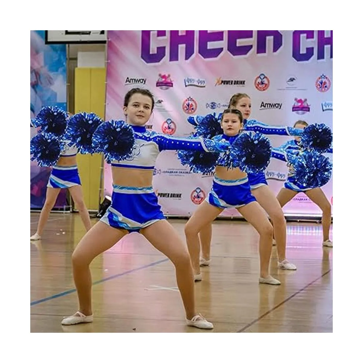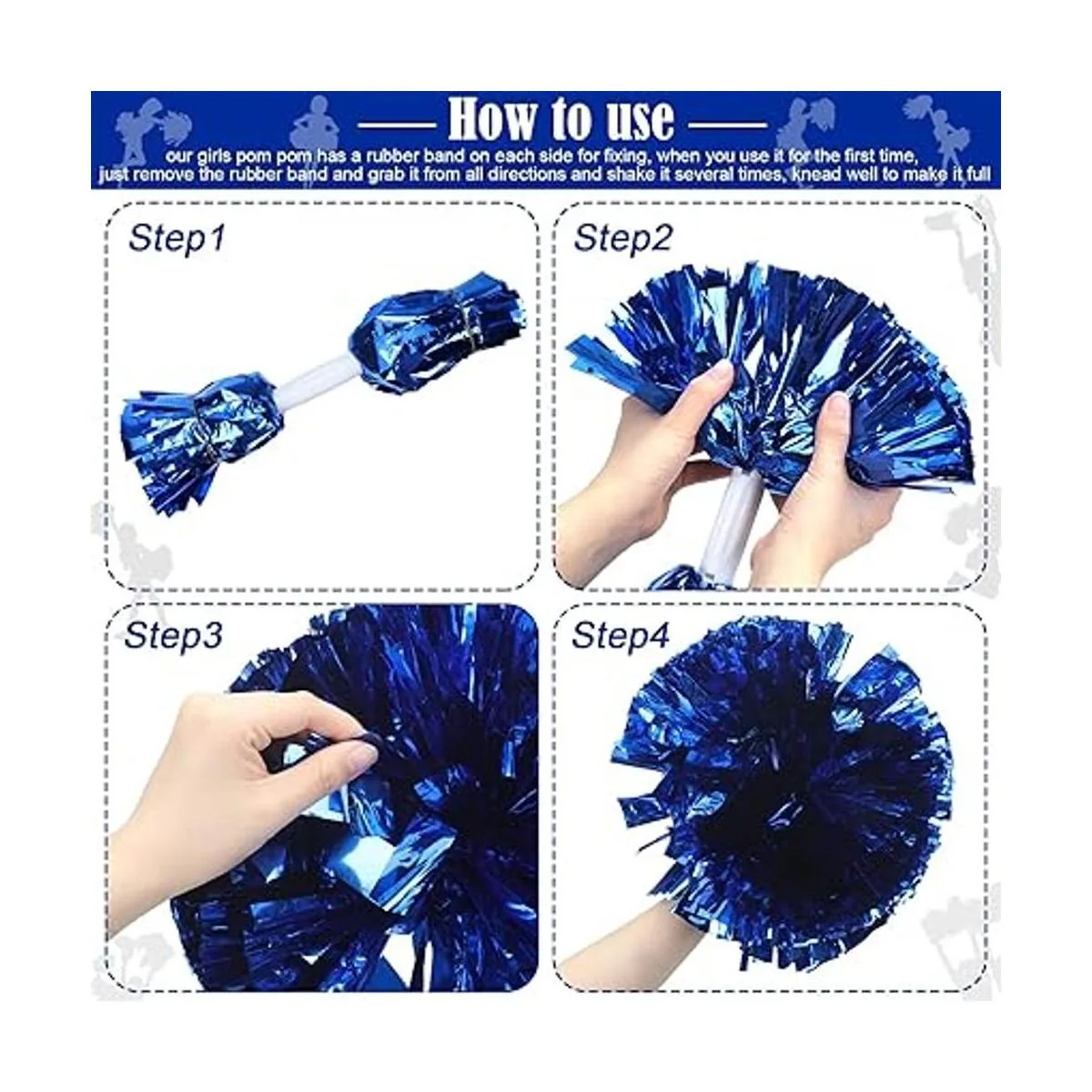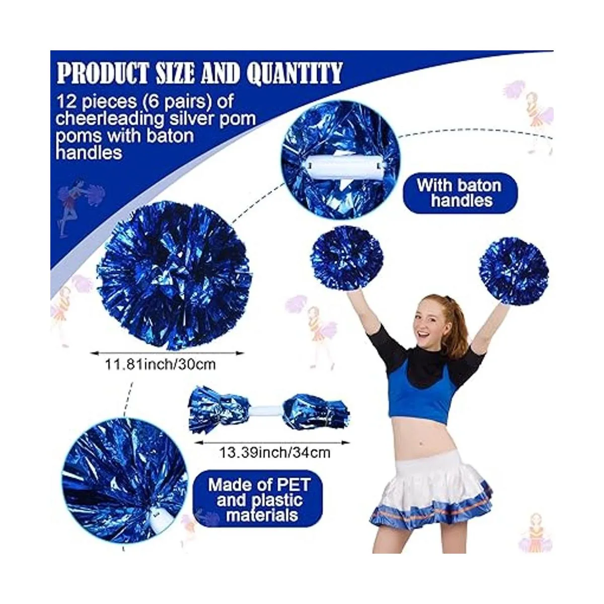 Cantidad suficiente: recibirás 12 piezas 6 pares de pompones azules de animadora con asas de bastón; cantidad suficiente puede satisfacer tus requisitos de práctica diaria; al mismo tiempo, también puedes compartirlos con los miembros de tu equipo de animadoras