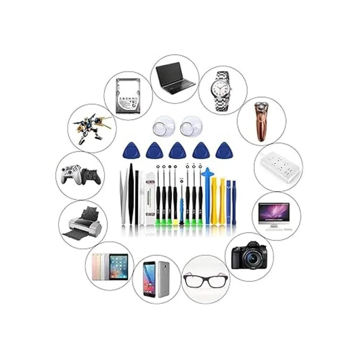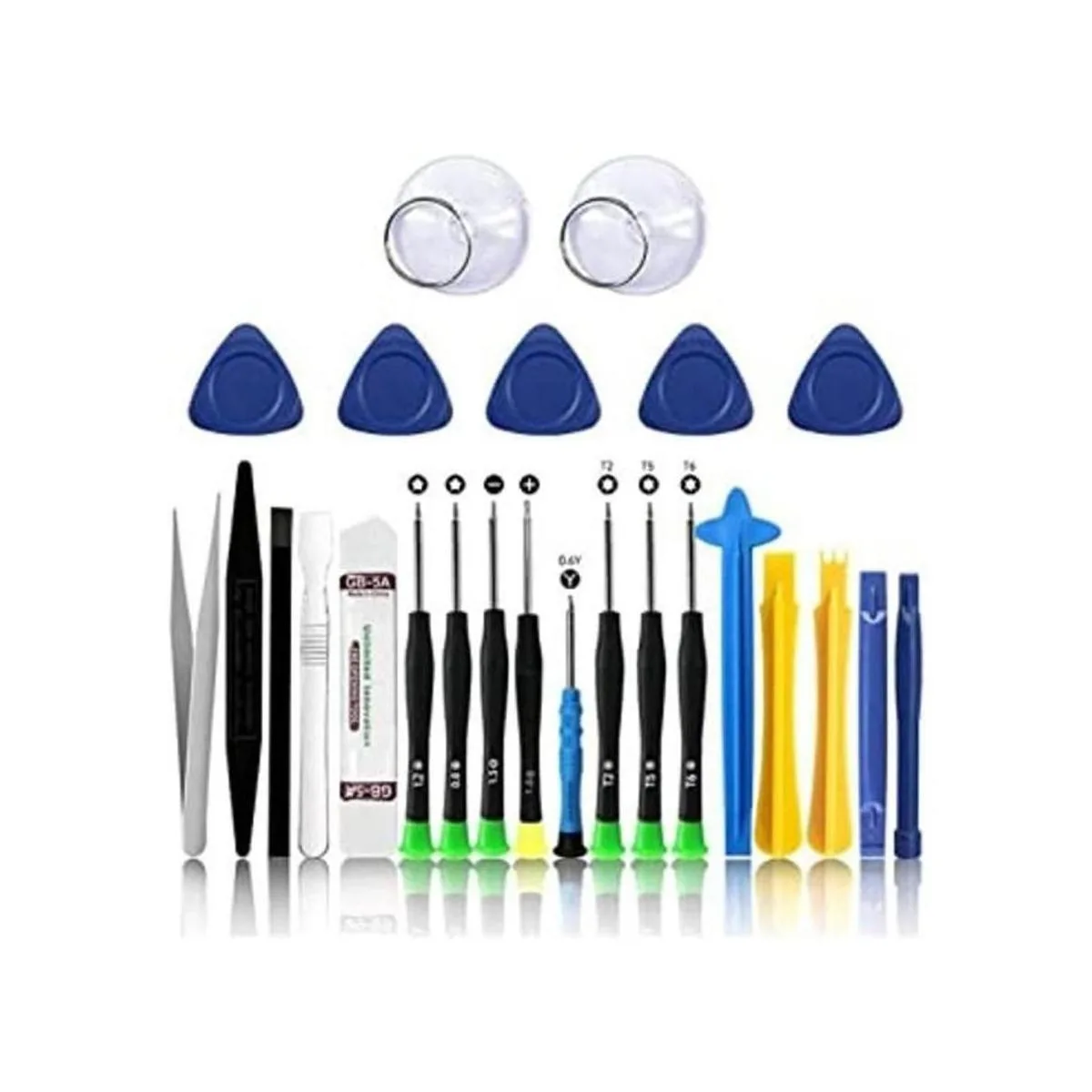Lo que obtendrás: viene con absolutamente todo lo que necesita. Kit de herramientas de reparación de teléfono de 25 piezas. Incluye 8 destornilladores de precisión, 14 herramientas de palanca de apertura, 1 pinzas, 2 ventosas de pantalla LCD en diferentes tamaños para satisfacer todas tus necesidades de funcionamiento.