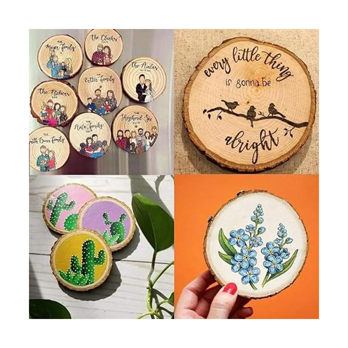 Material: madera de pino redonda natural sin pintar, prelijada y pulida, algunas cortezas de madera pueden caer parcialmente de las rodajas