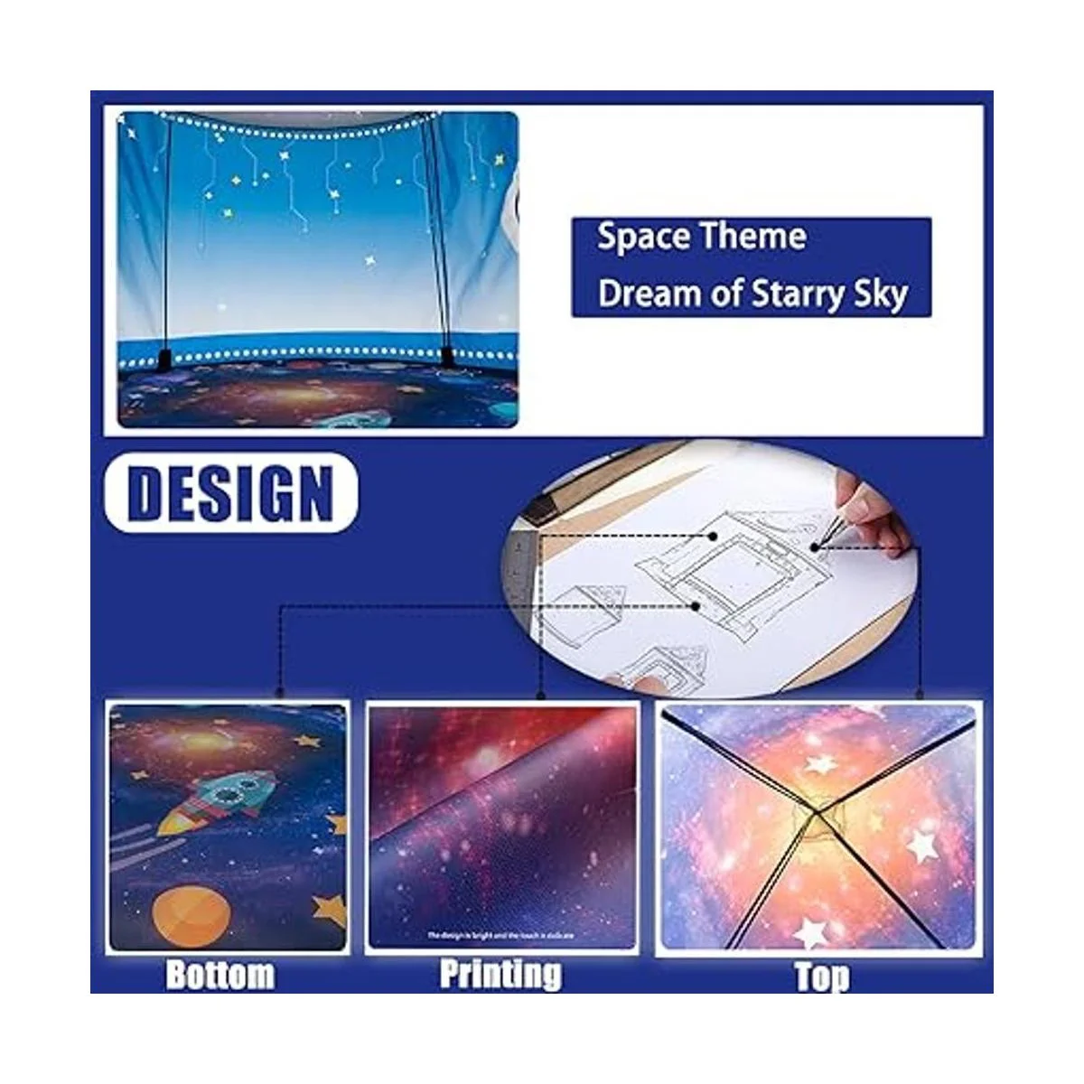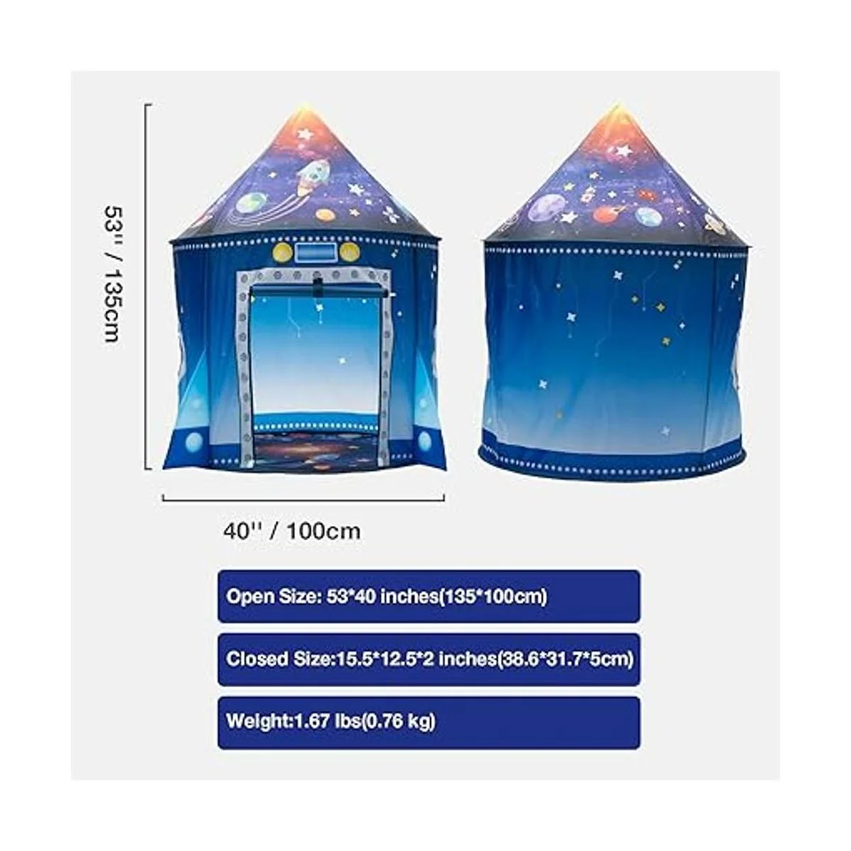 Tu misión espacial está lista para empezar: haz que tu hijo se imagine ser un astronauta en un mundo del universo. Abre la tienda de campaña de cohetes. Ahora puedes comenzar tu aventura espacial y explorar el espacio exterior. Con la forma de nave espacial llena de estrellas y objetos brillantes, incluso estarán encantados de compartir la tienda espacial y el fuerte con hermanos y amigos mientras asumen roles como astronautas, capitanes, alienígenas, etc. mucho más.