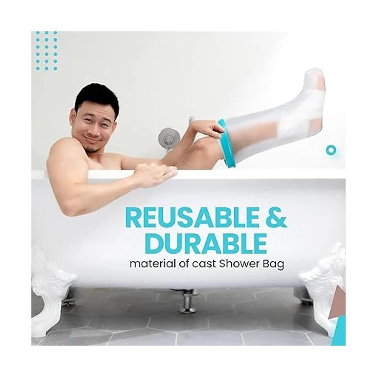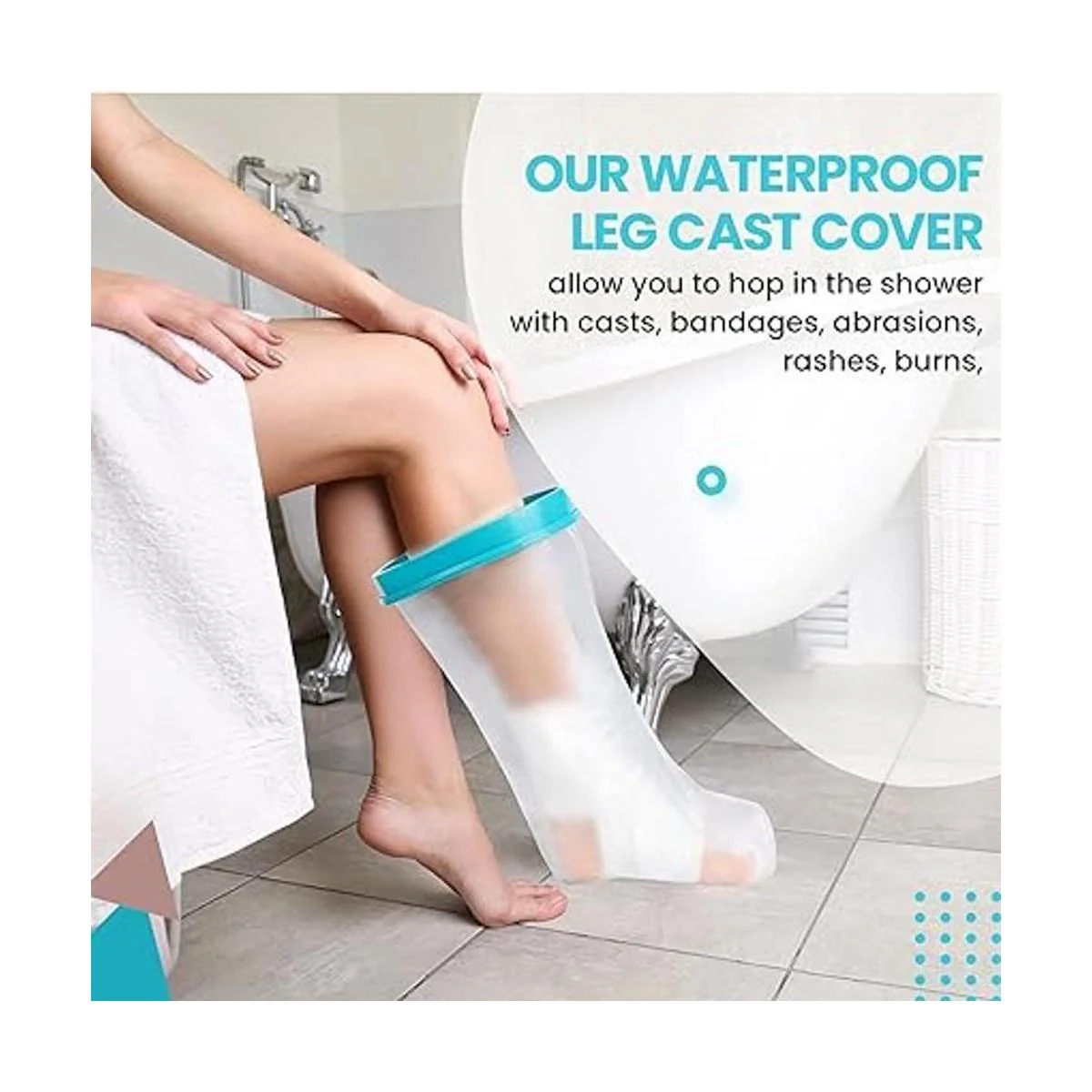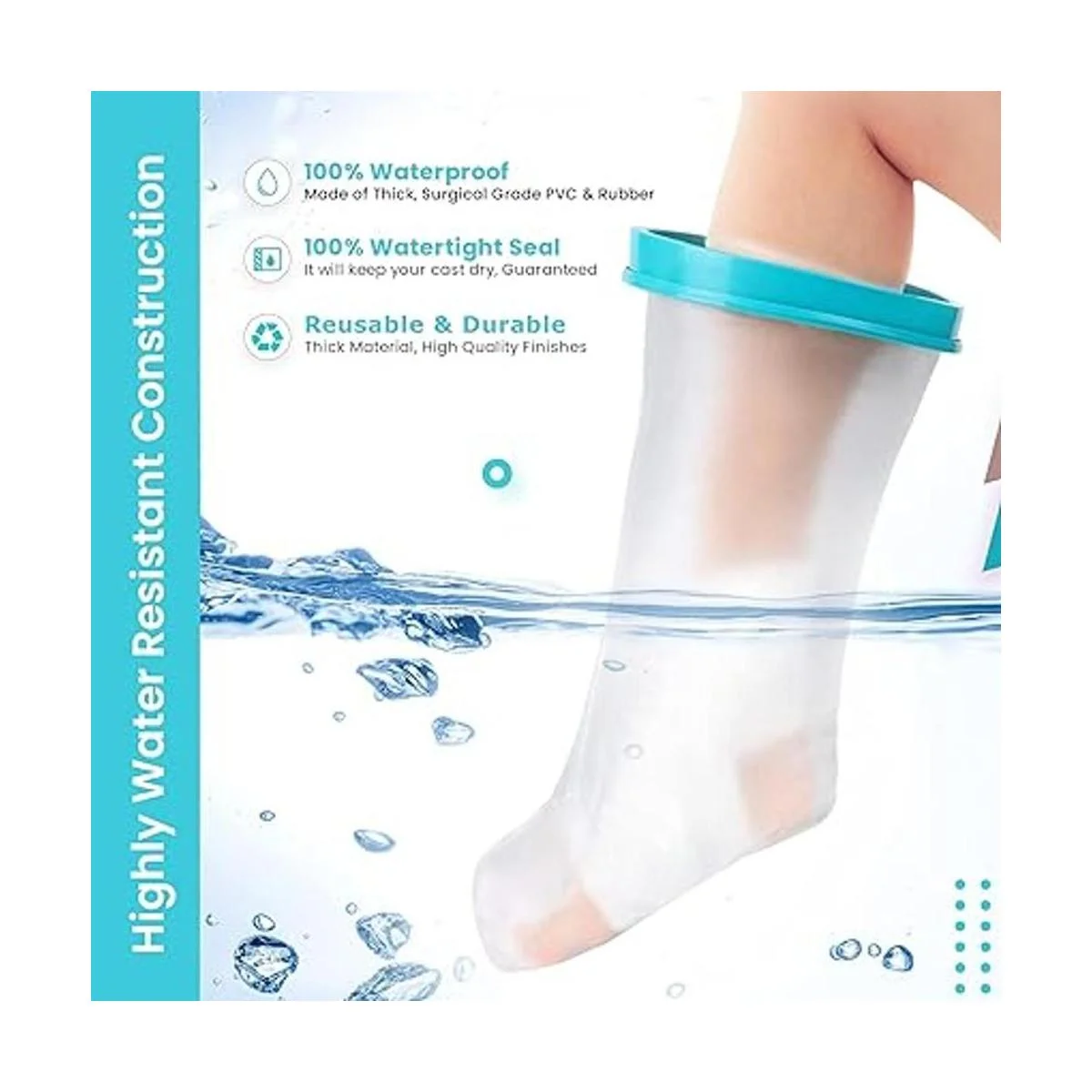 Wilsco Funda fundida 100% impermeable para ducha, fundas reutilizables para cirugías de piernas y pies, fundas fundidas para patas de ducha, bolsa de fundición para ducha, cubierta fundida para pie de ducha (grande)