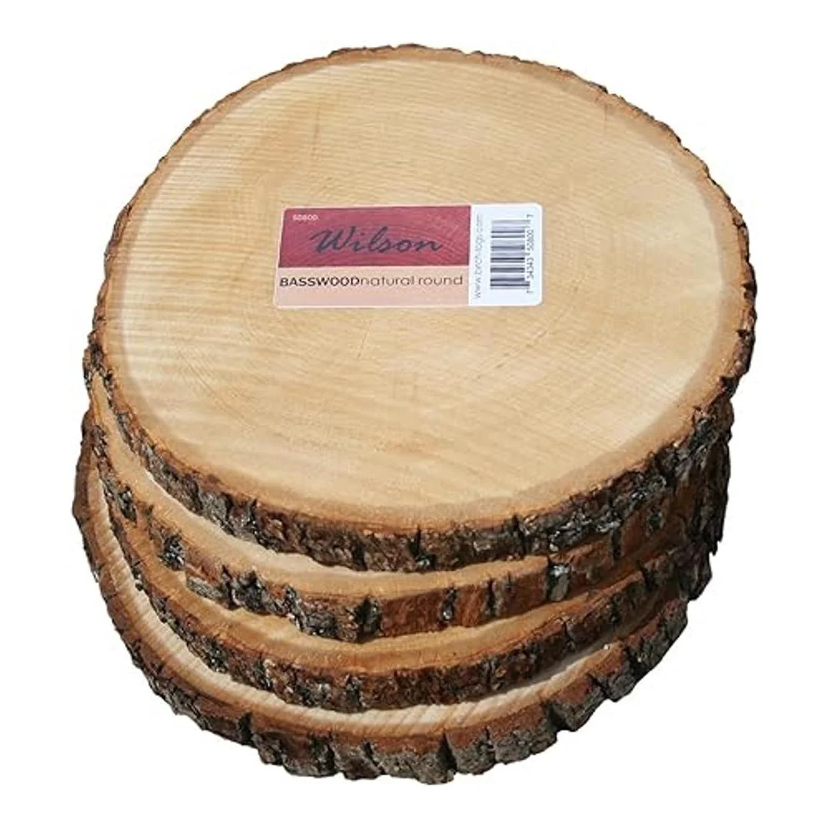 Wilson Madera de tilo redonda sin lijar, paquete de 4, 7 9 pulgadas de diámetro x 1 pulgada de grosor